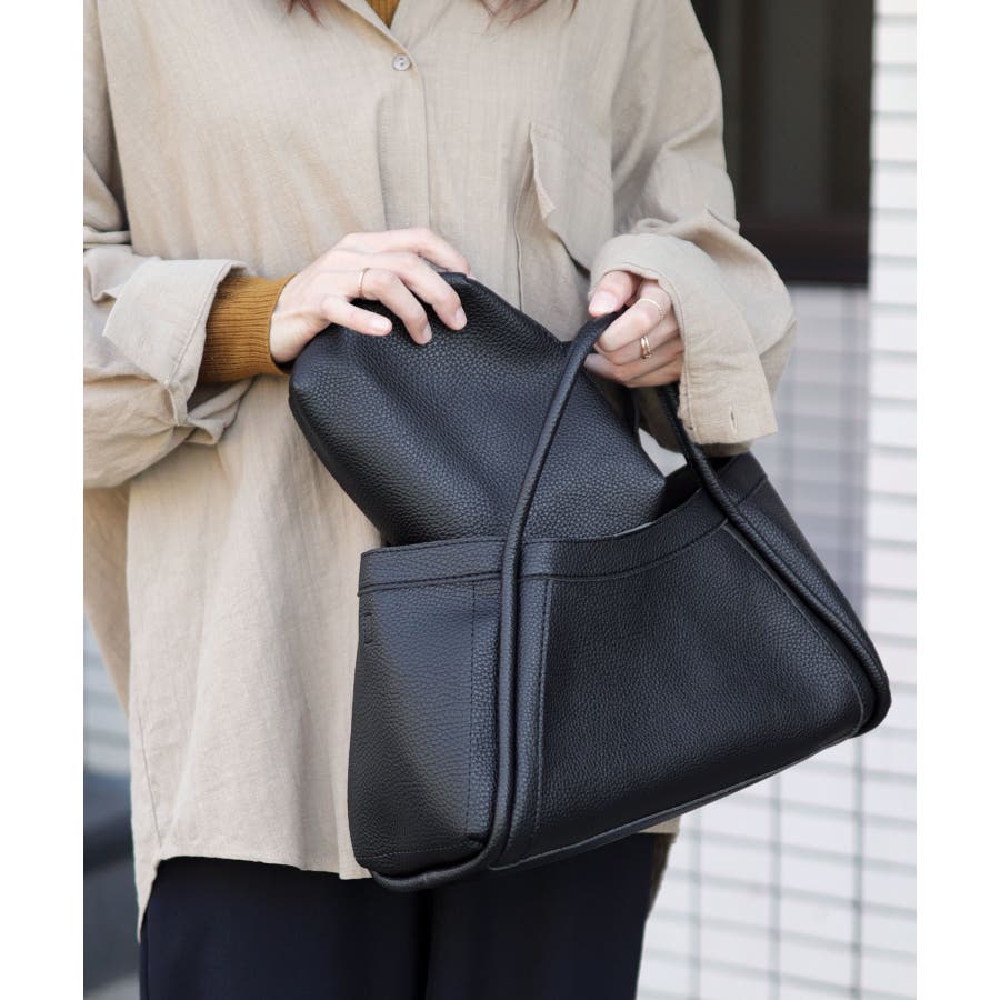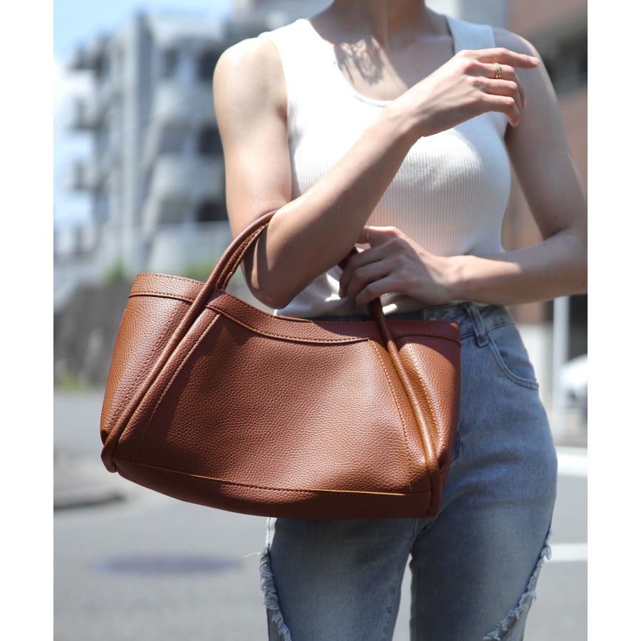 オンオフ兼用で、キレイめにも、大人カジュアルにも合わせやすいおしゃれなハンドバッグに仕上げました。