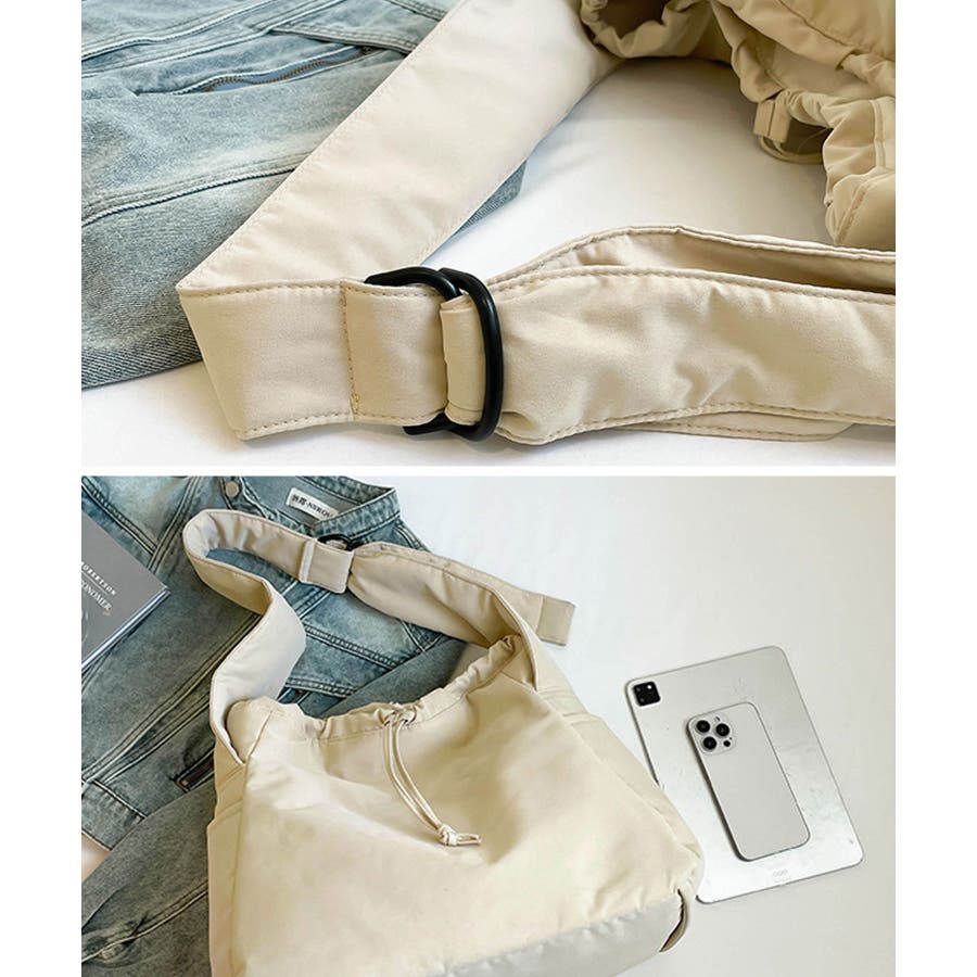 肩紐幅はワイド設計なので、肩への負担が少なく使い勝手も◎さらにリングパーツで簡単に長さ調節できるので、その日のスタイルに合わせて持ち方を変えられるのも嬉しいポイント!