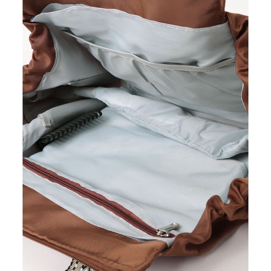 リュックとして使わない時にはリュック紐をしまっておける収納スペース付き!