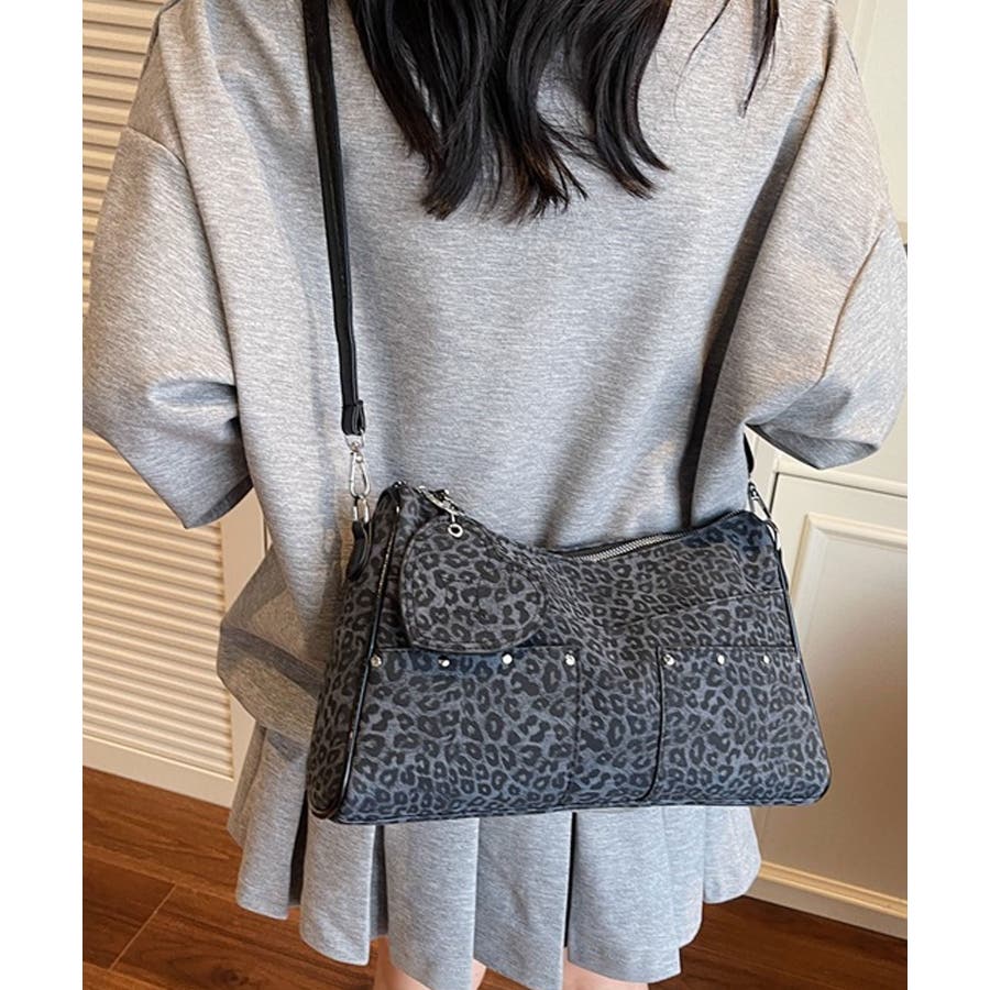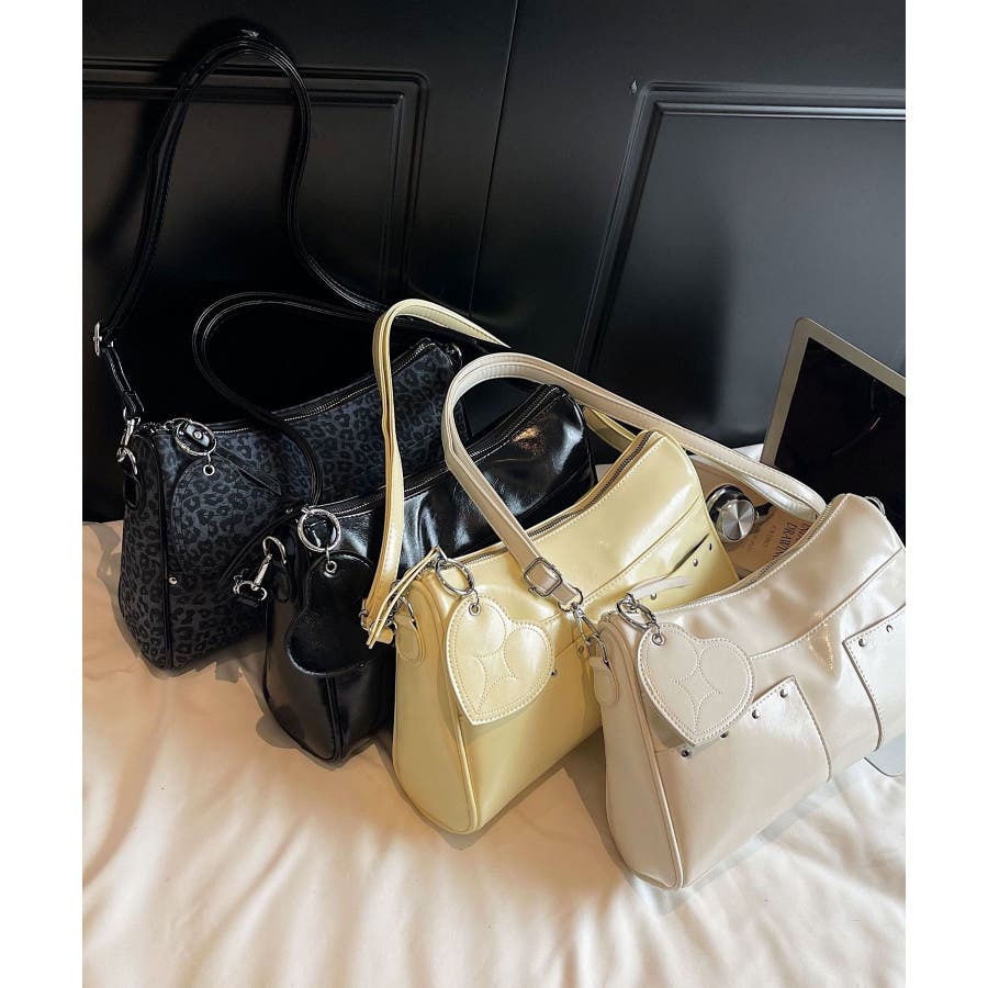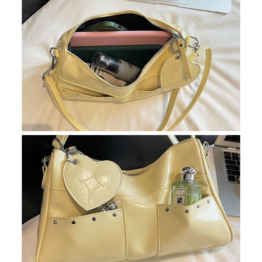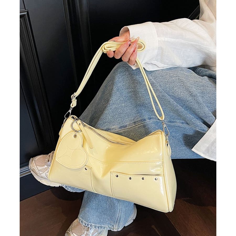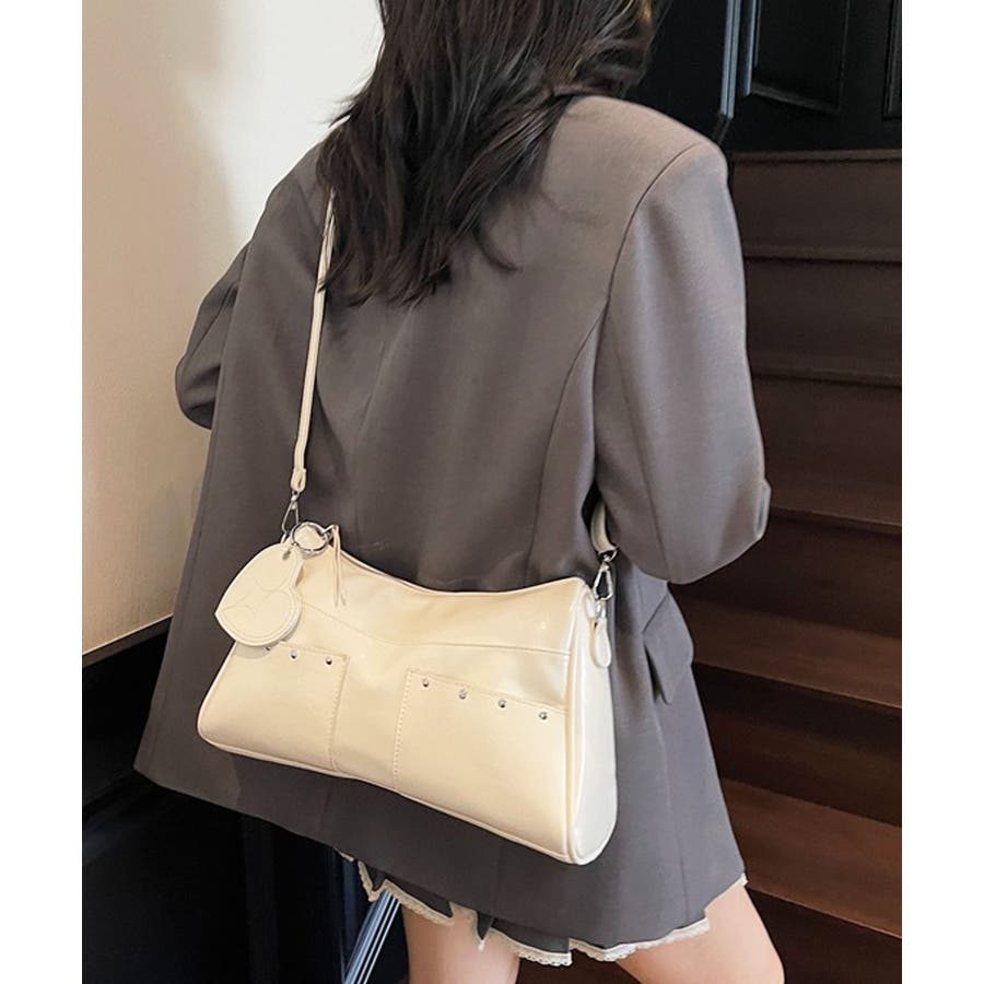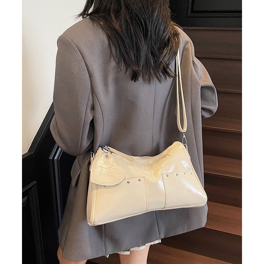 サークルスタッズをアウトポケットにあしらった、トレンドライクな韓国系Y2Kルックのショルダーバッグ!