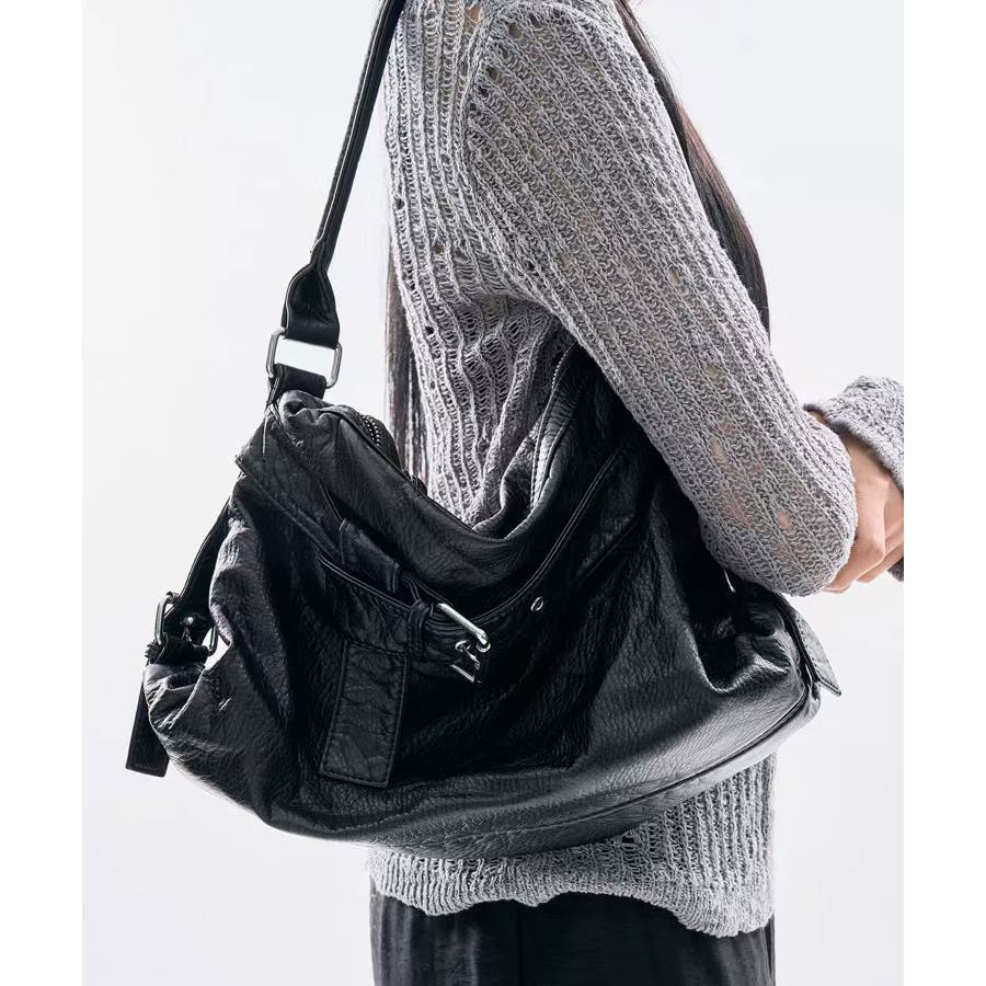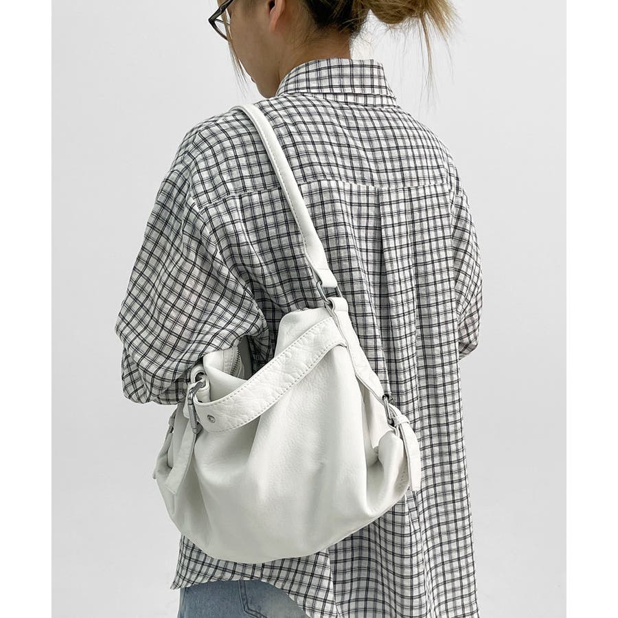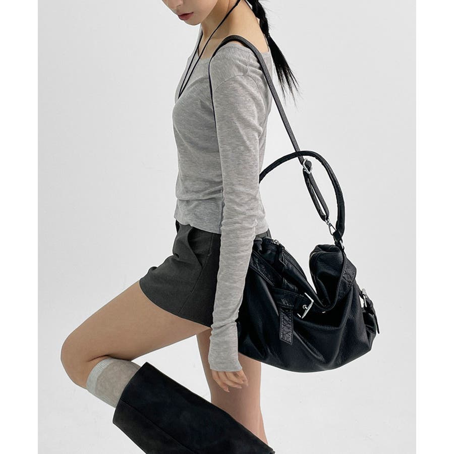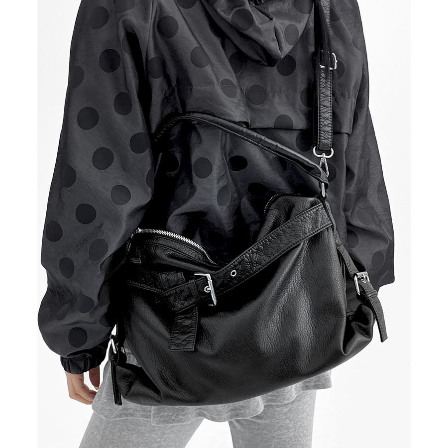 両サイドのベルトによって、くったりとしたフォルムがこなれ感のある佇まいに。