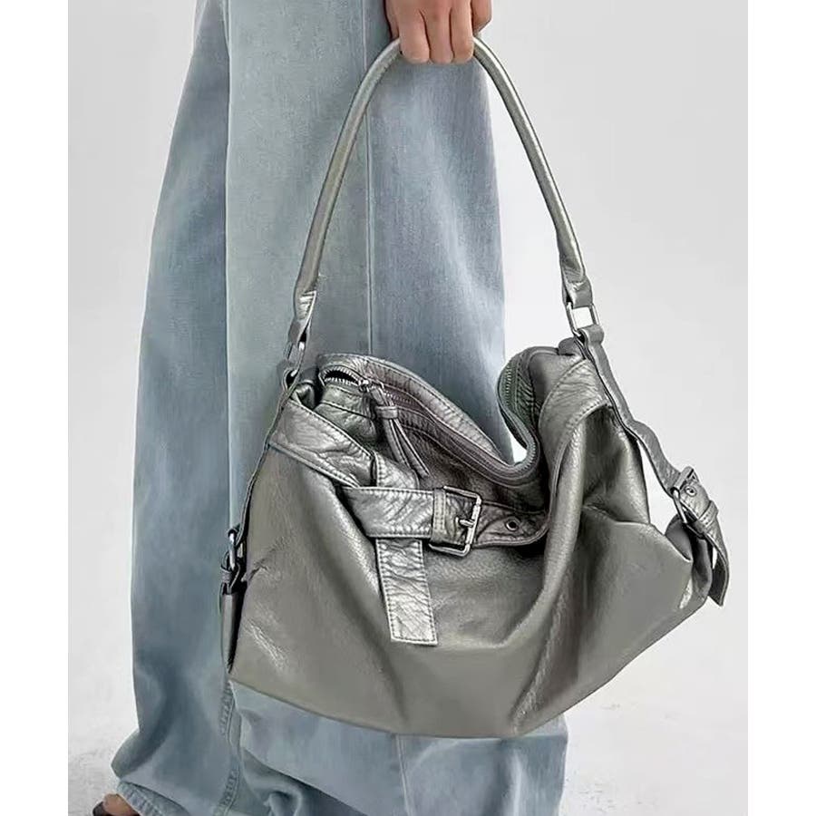 PUレザーライクベルトデザイントートバッグ/ショルダーバッグ。