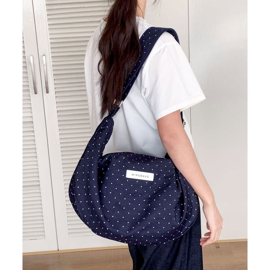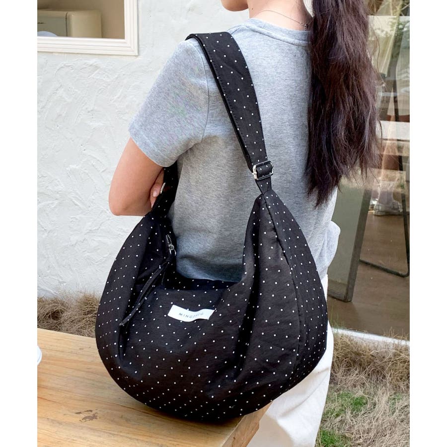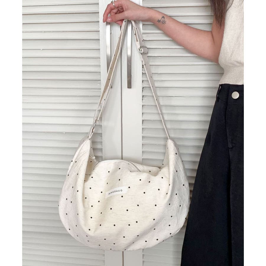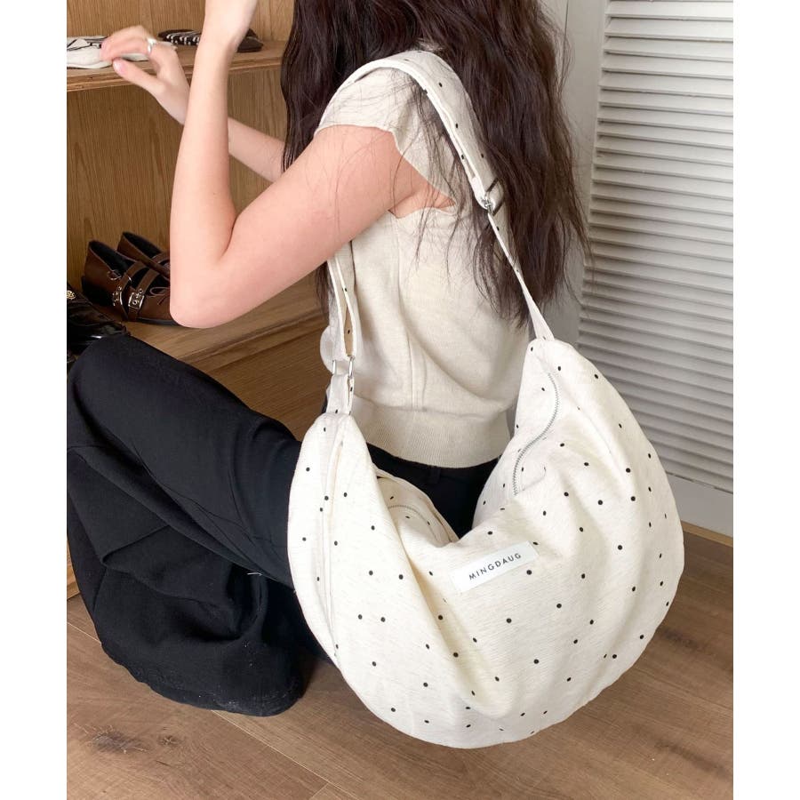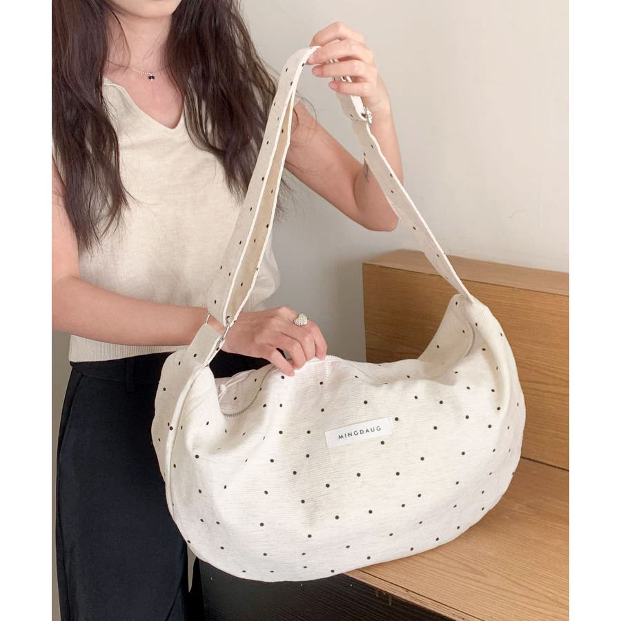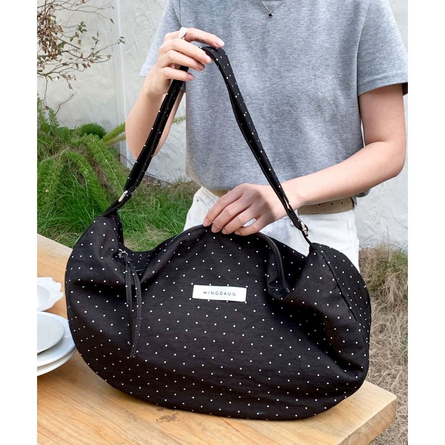 ドット柄ラウンドショルダーバッグ/旅行バッグ/通学バッグ。
