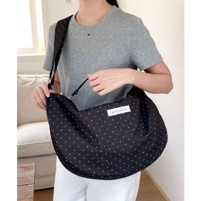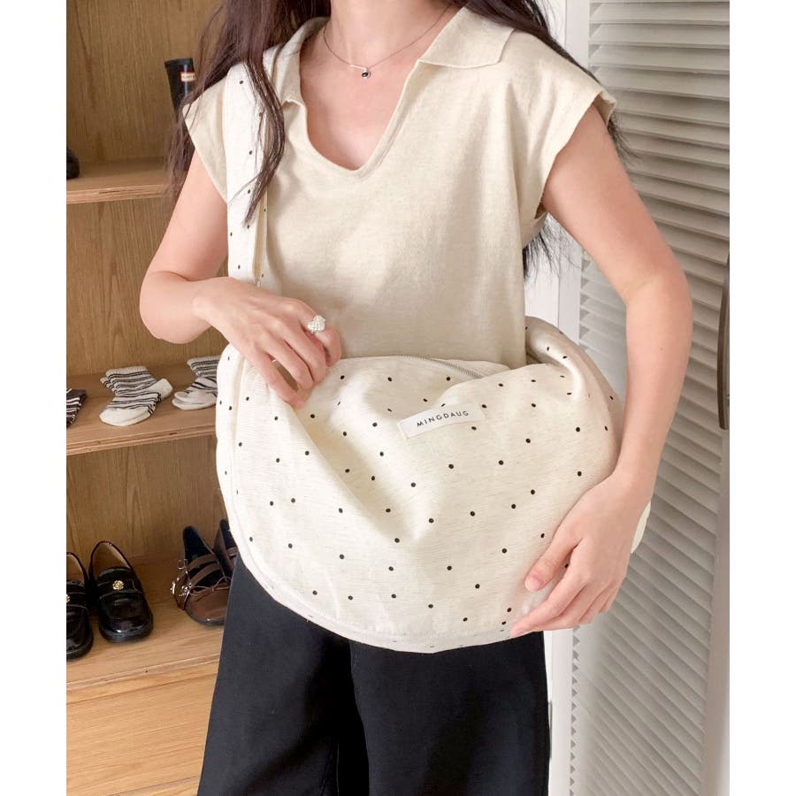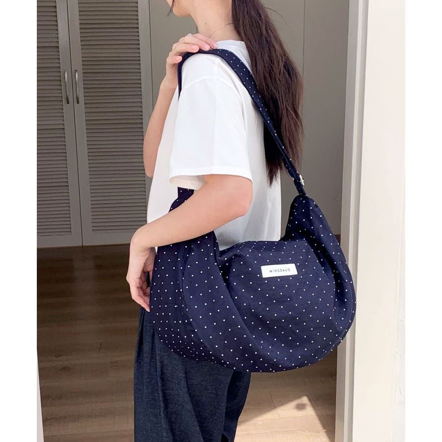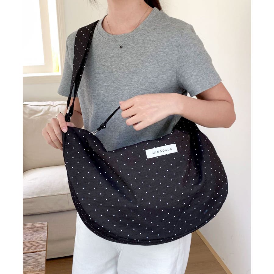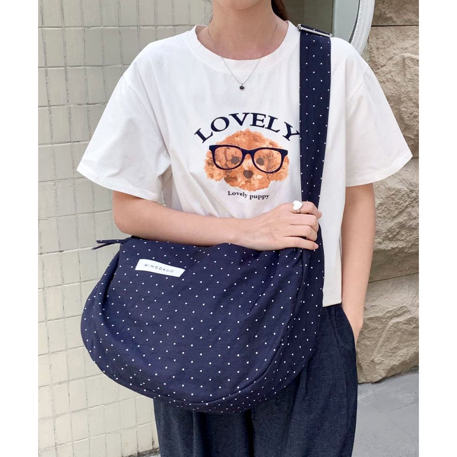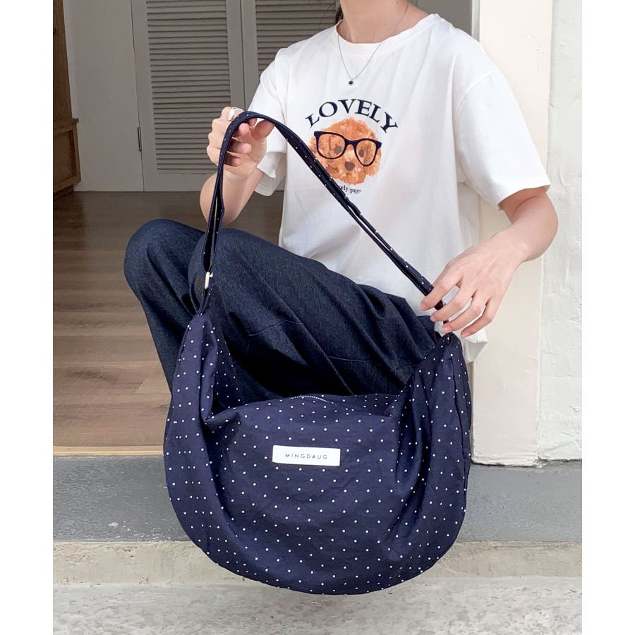 ドット柄ラウンドショルダーバッグ/旅行バッグ/通学バッグ。