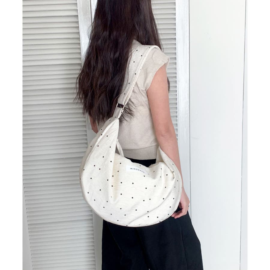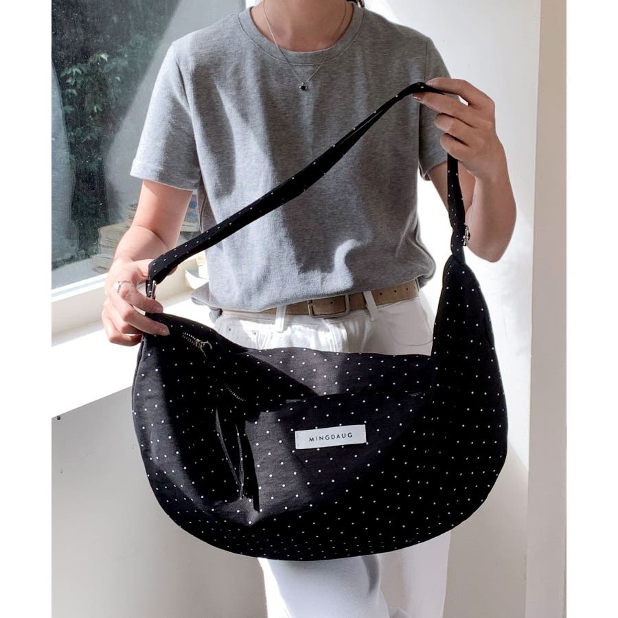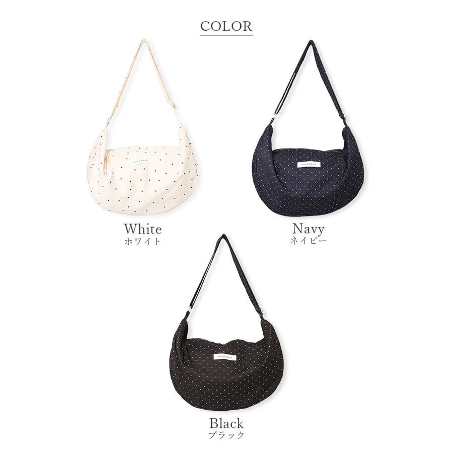 今季トレンドのドット柄(水玉柄)生地をラウンドフォルムに仕立てた大人かわいいデザインのショルダーバッグ!