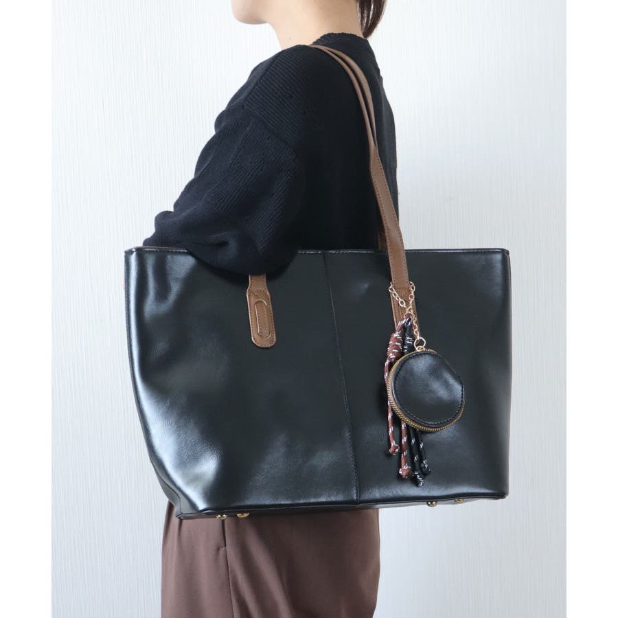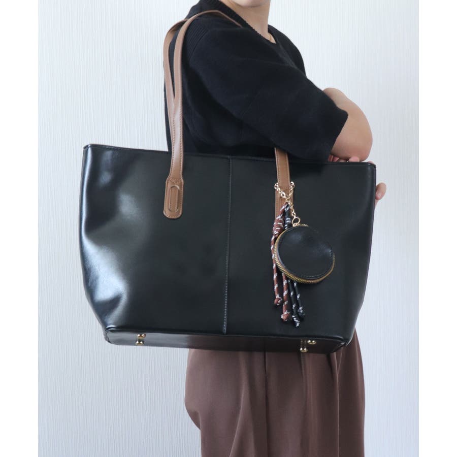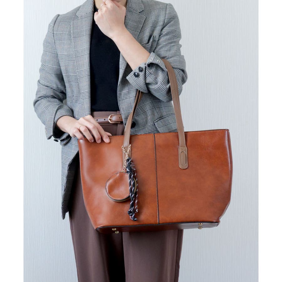 オンオフ兼用で、キレイめにも大人カジュアルにも合わせやすいスタイリッシュなトートバッグです。