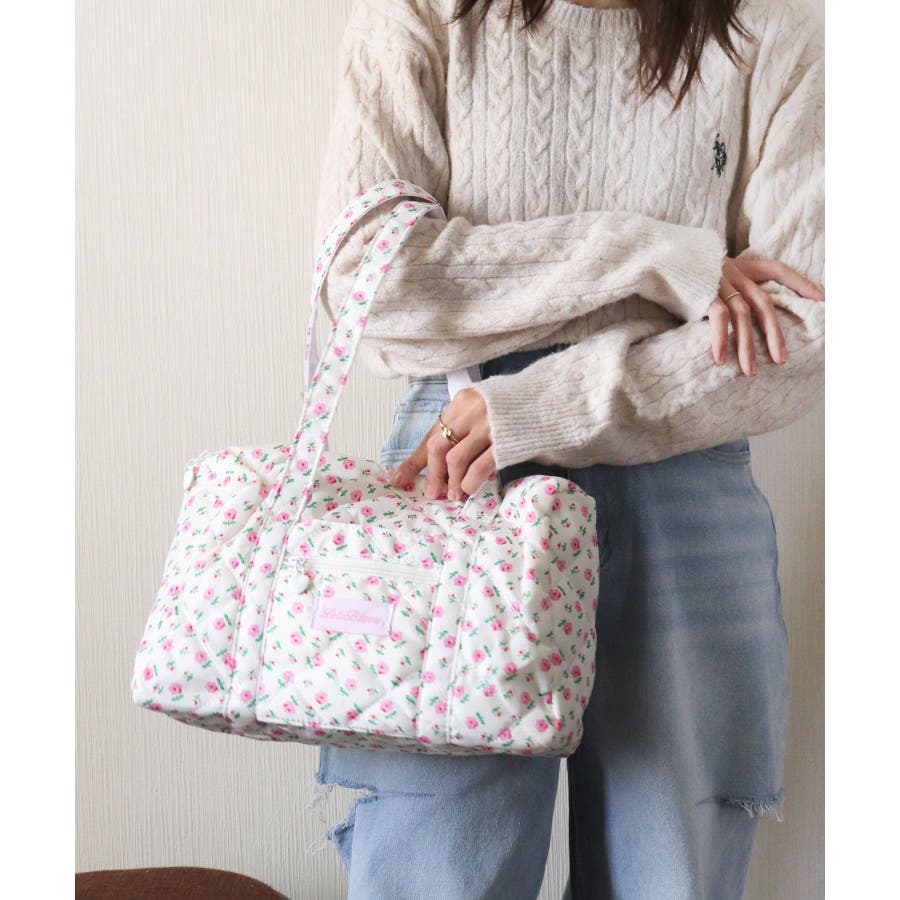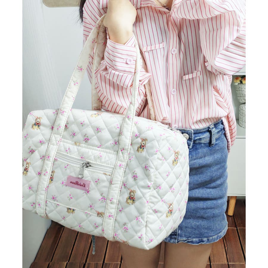 ガーリーパターンキルティングボストンバッグ/トートバッグ/マザーズバッグ。