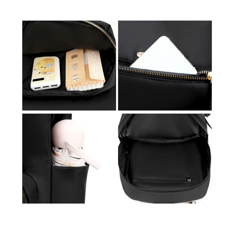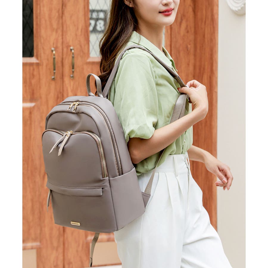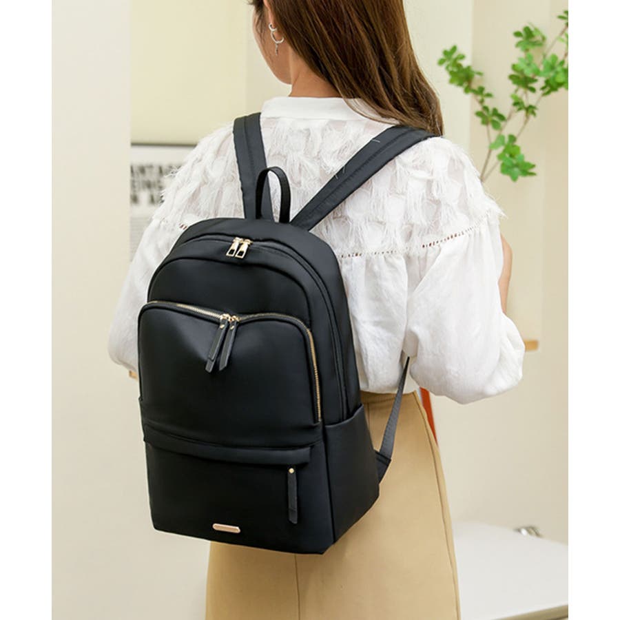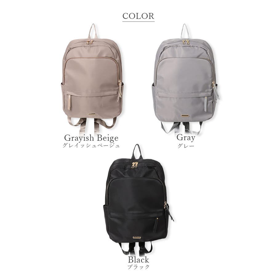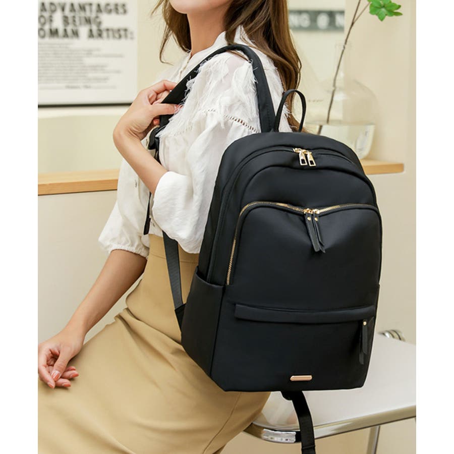 程よく光沢のあるオックスフォード生地に、ゴールドの金具パーツが上品さをプラスする大人かわいいリュック♪