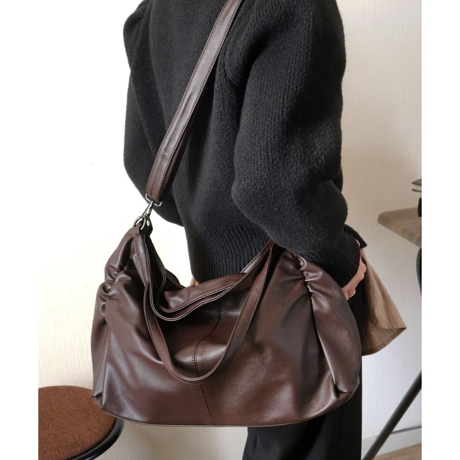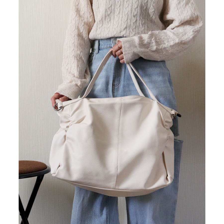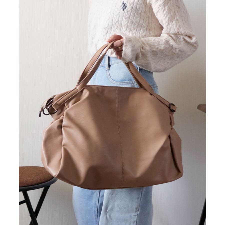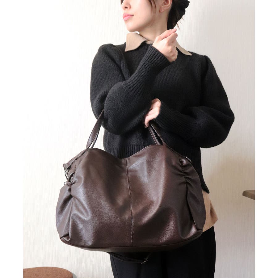 PUレザータッチギャザートートバッグ/ショルダーバッグ/オフィスバッグ。