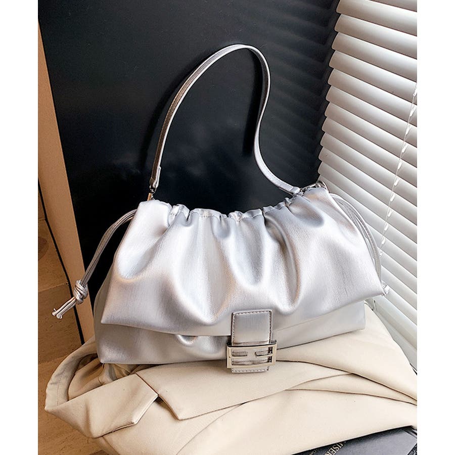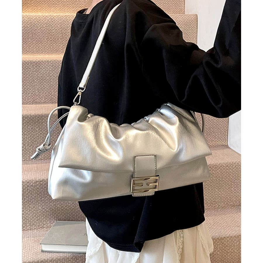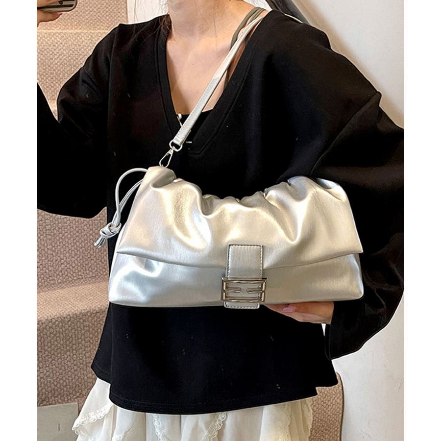 シルバーバックルフラップバッグ/ハンドバッグ/ショルダーバッグ。