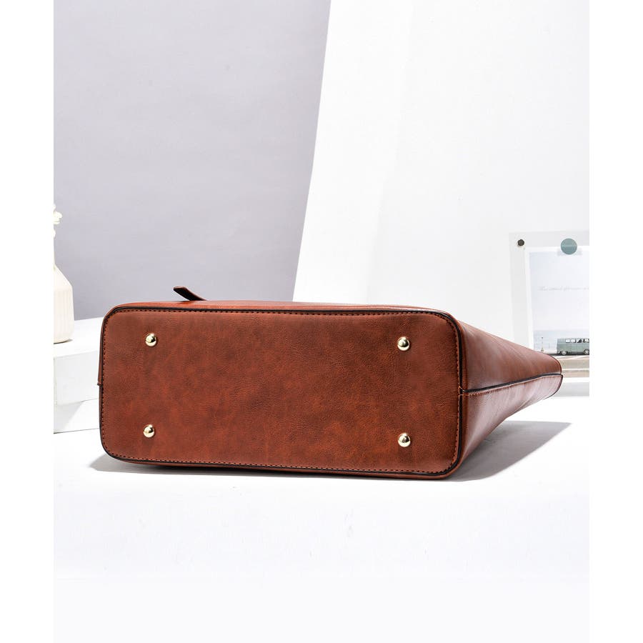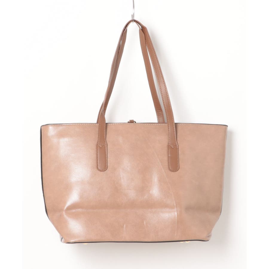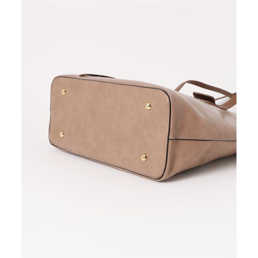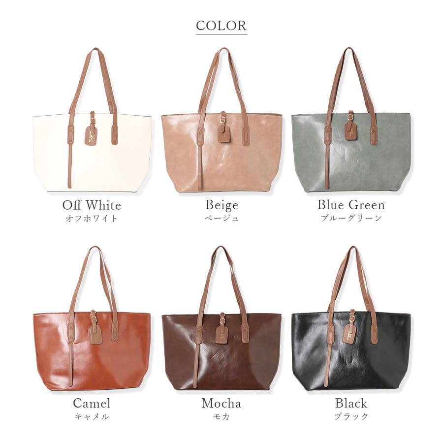 かっちり硬めのPUレザーを使用し、舟形フォルムに仕立てた大人かわいい王道デザインのトートバッグ。
