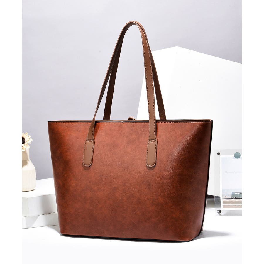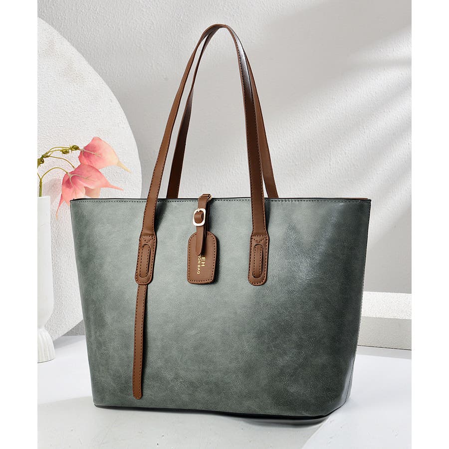 PUレザータッチバイカラートートバッグ/ビジネスバッグ/オフィスバッグ。