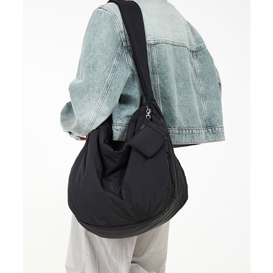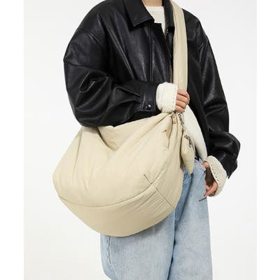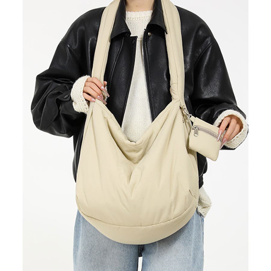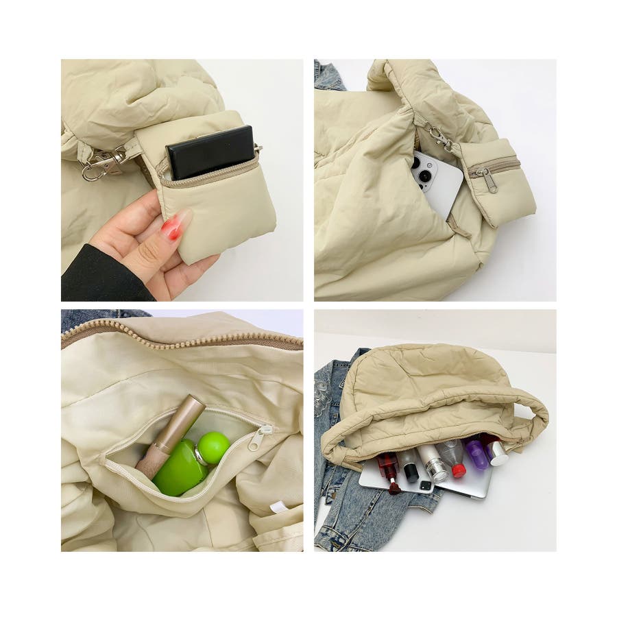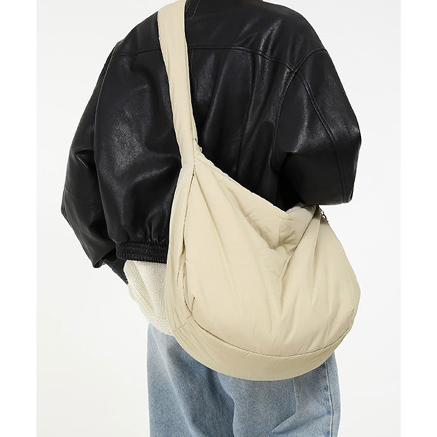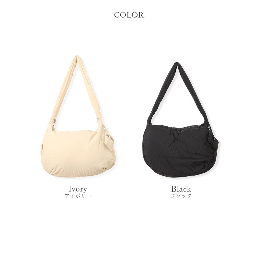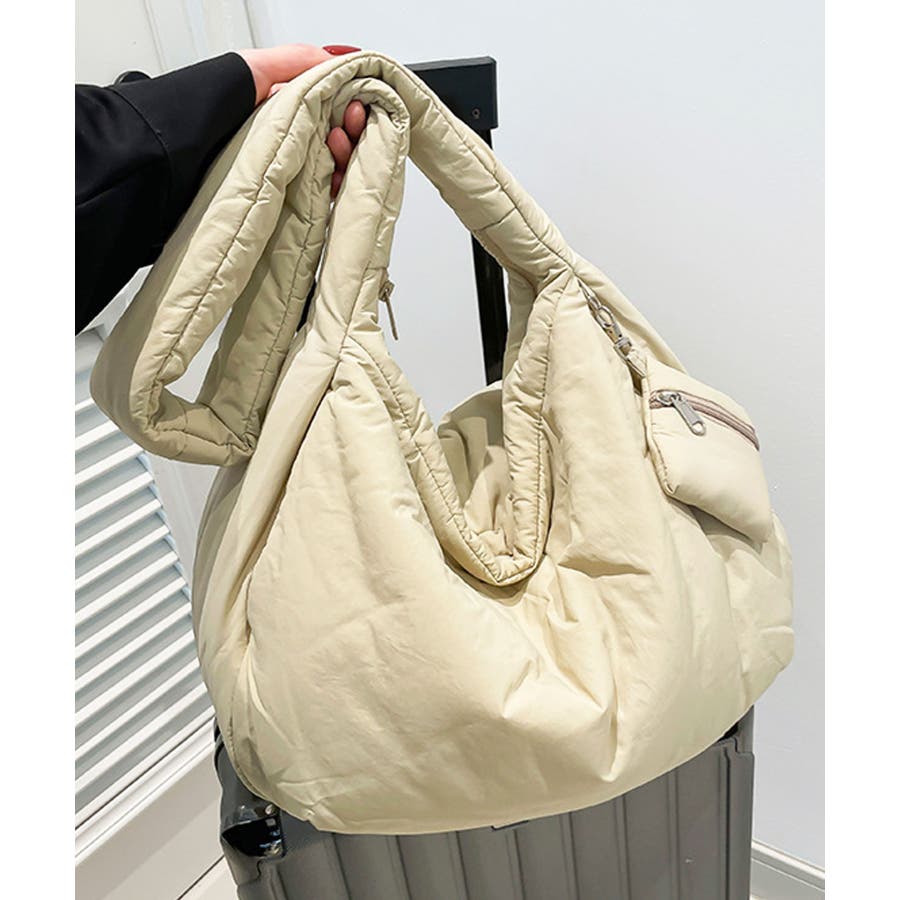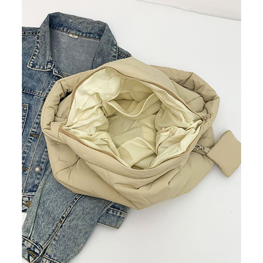 サラリとした肌触りの生地にふっくら中綿を入れ、トレンドライクなパフィバッグに♪