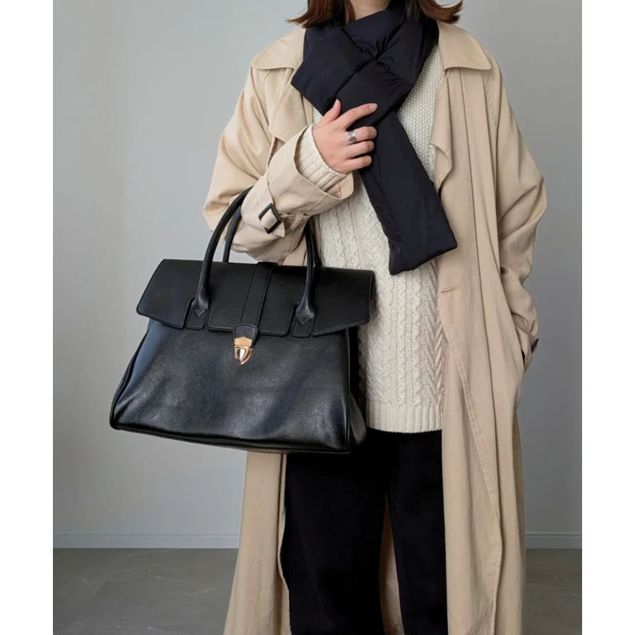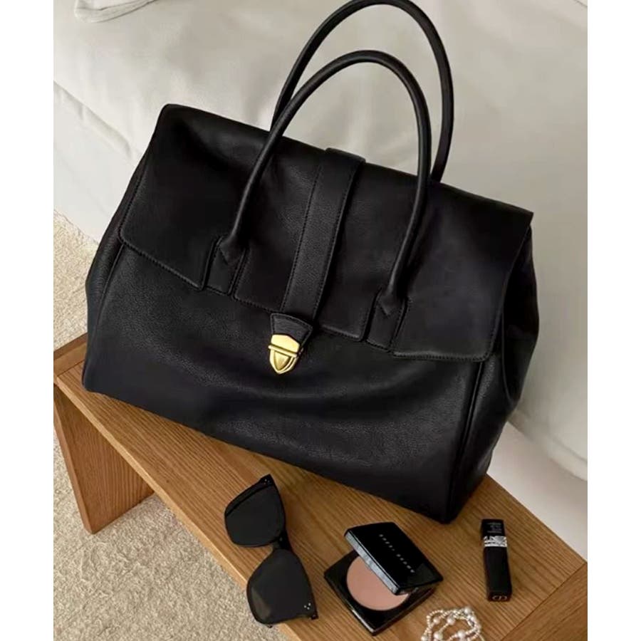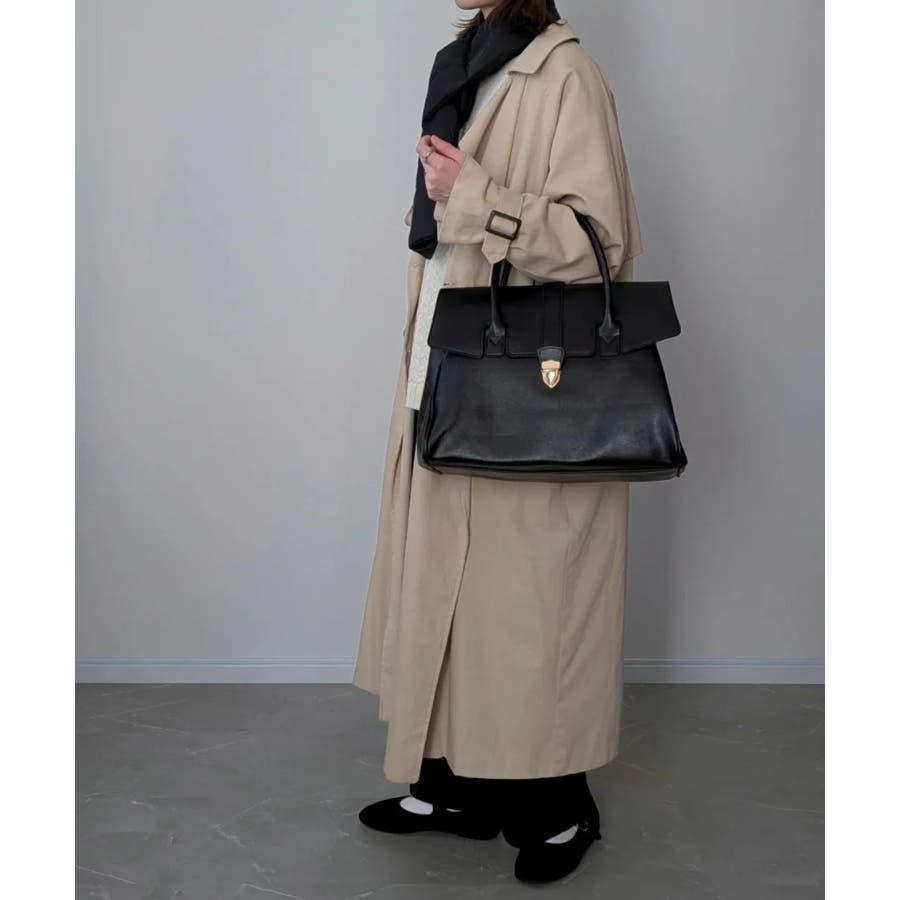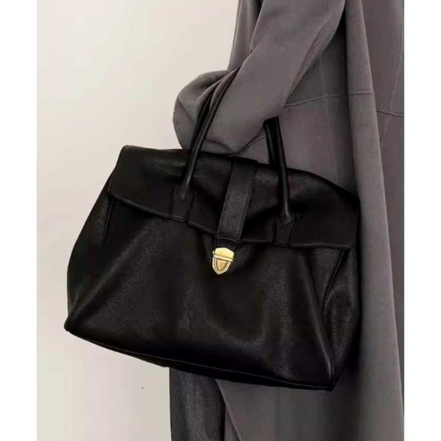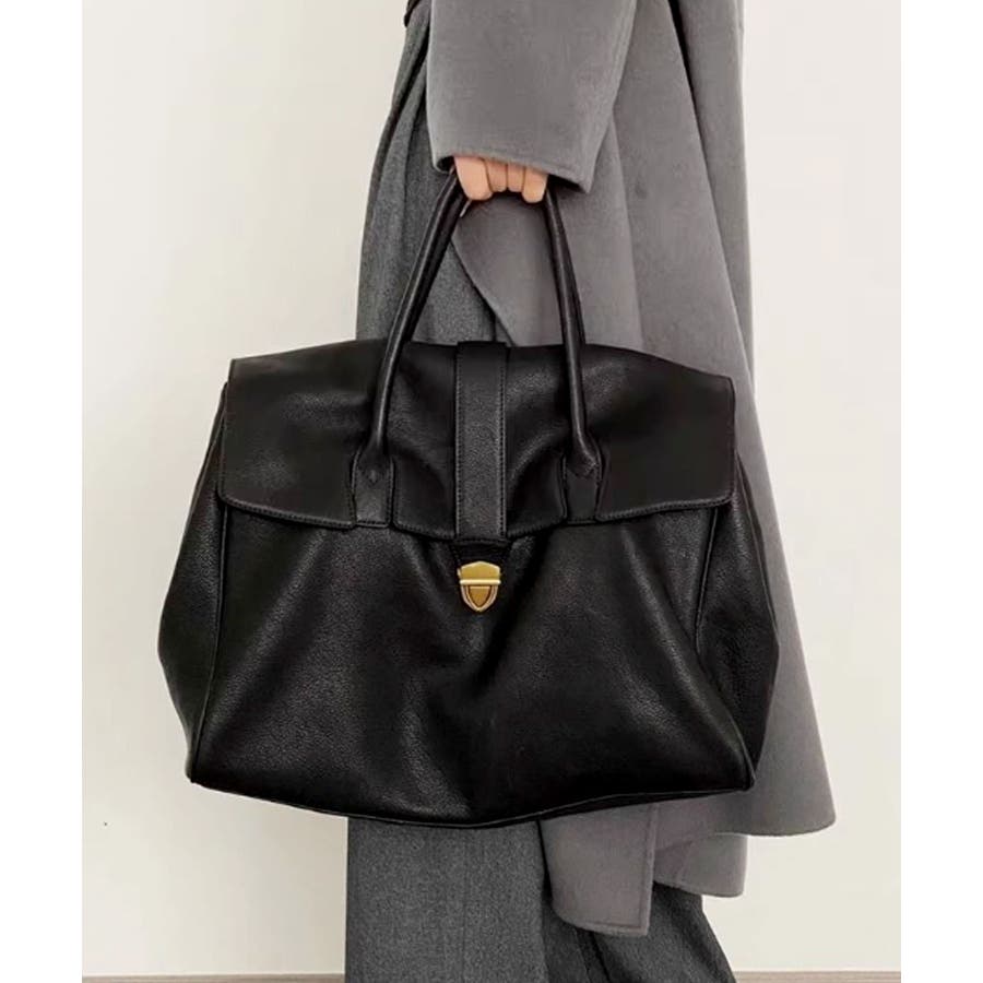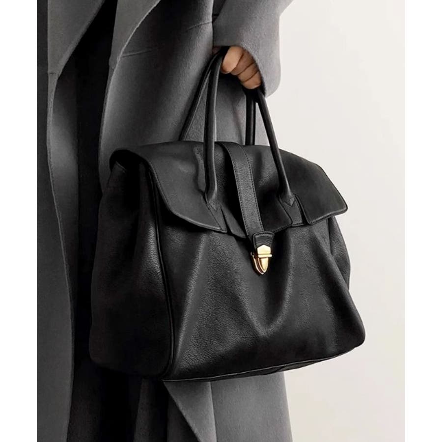 クラシカルな印象のフラップ使いにトレンドのワイドフォルムを組み合わせ、スタイリッシュなデザインのボストンバッグに。