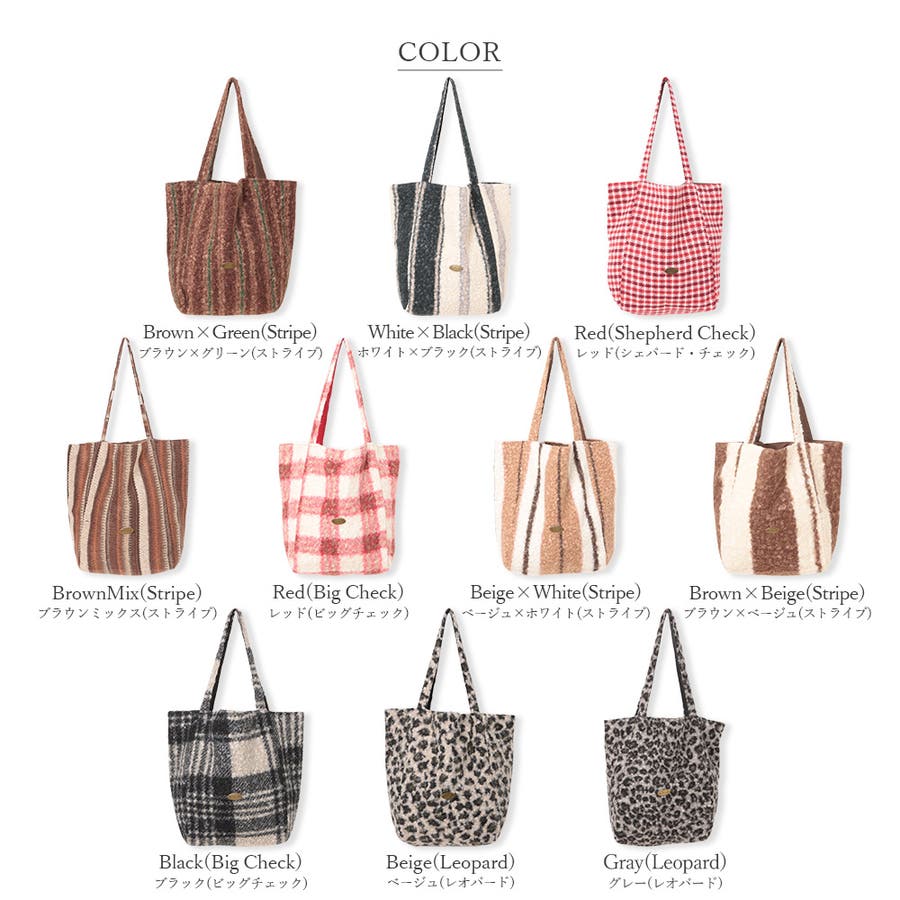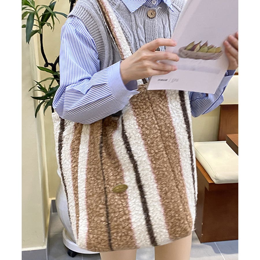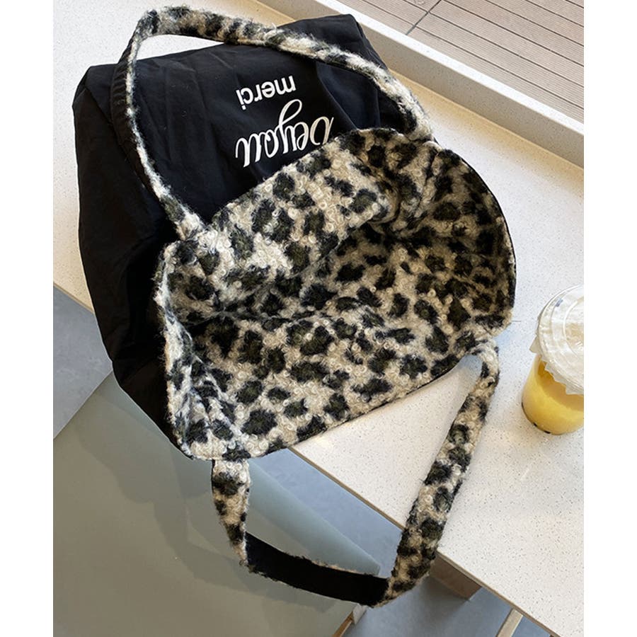 アソート柄ボアトートバッグ/サブバッグ/肩掛けバッグ。