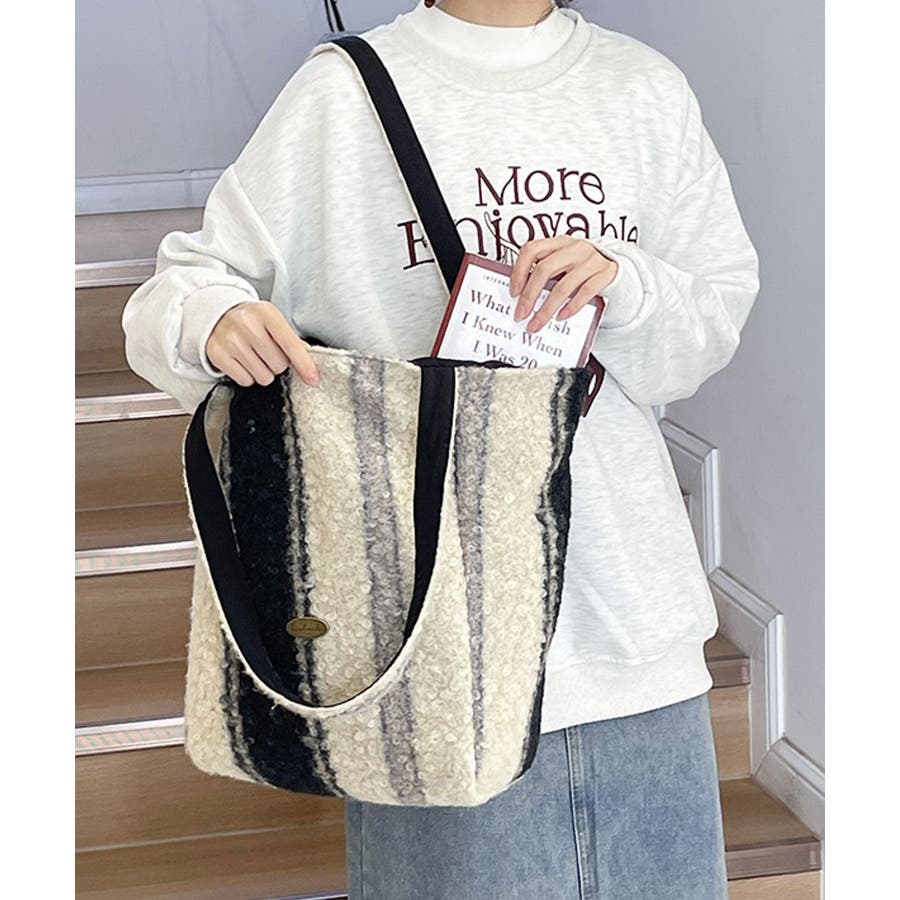 起毛感のあるウールボア素材を使用し、秋冬シーズンにぴったりなほっこりトートバッグに◎