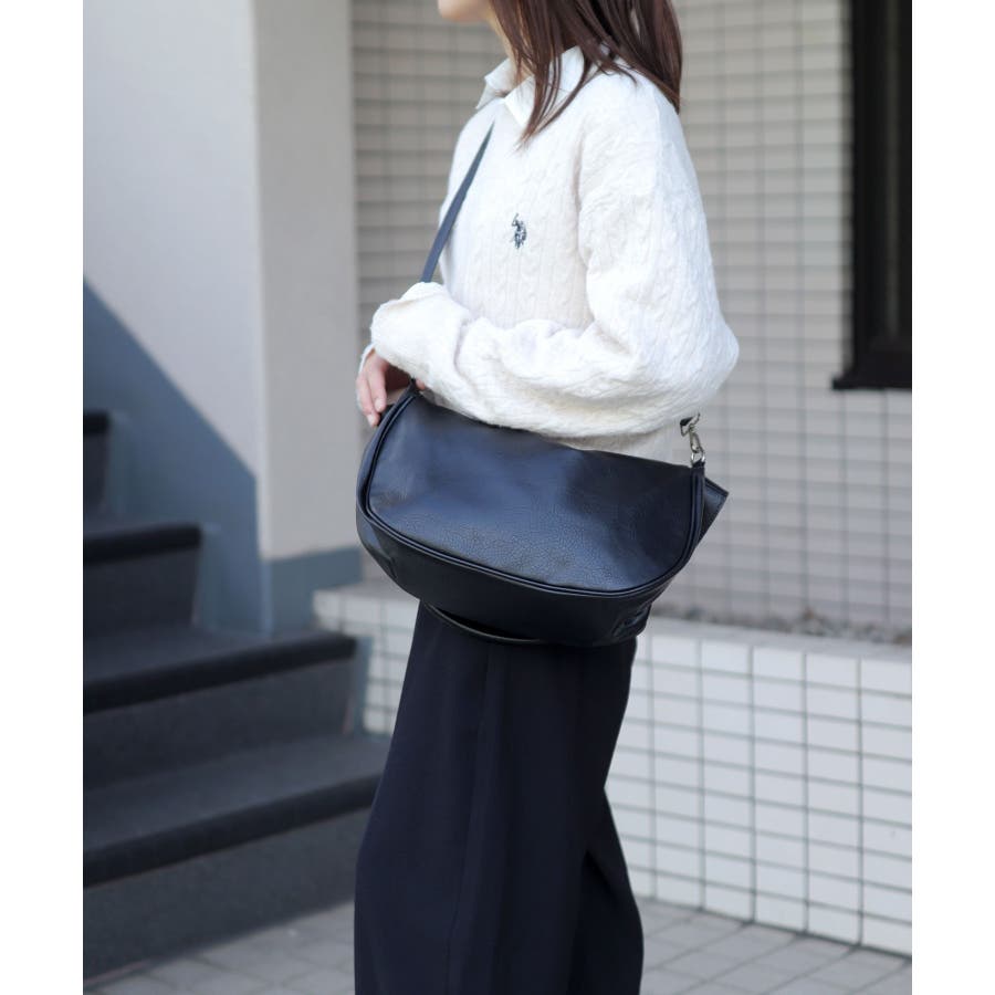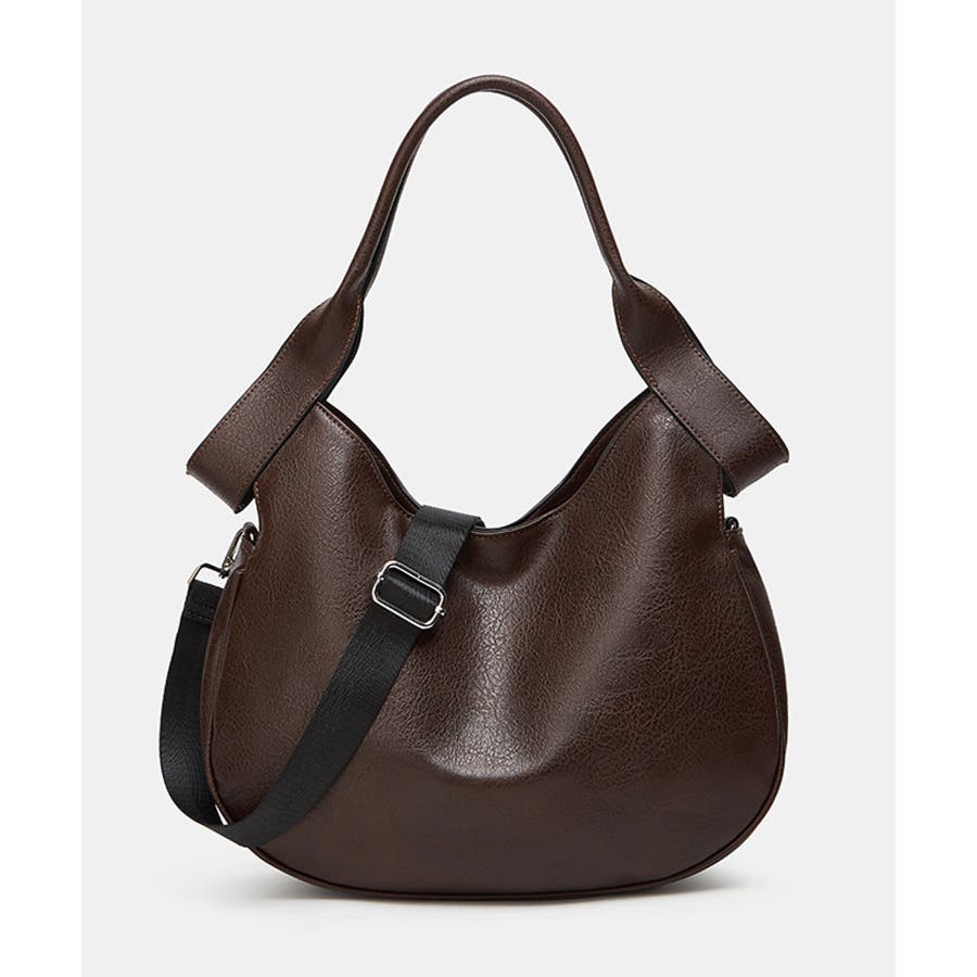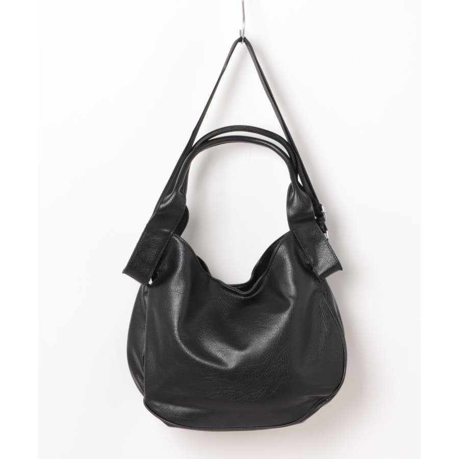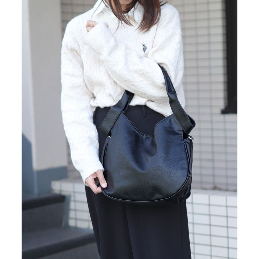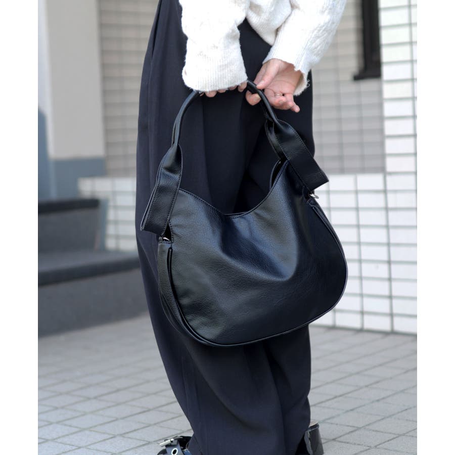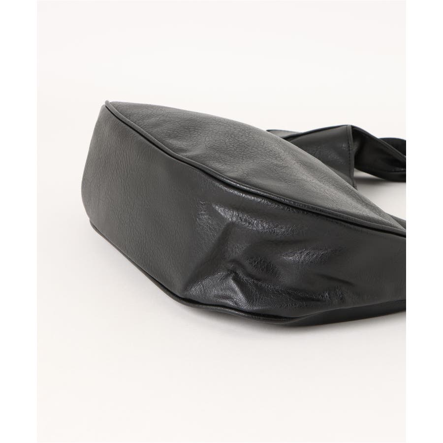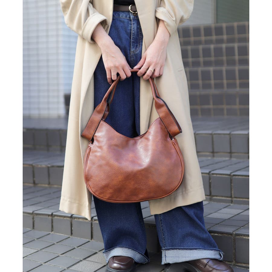 シュリンク加工を施したヴィンテージ調PUレザーを使用し、印象的なハンドルデザインに仕立てたショルダーバッグ。
