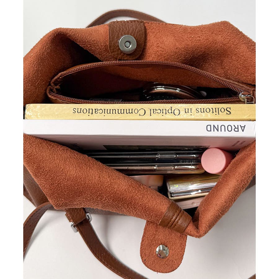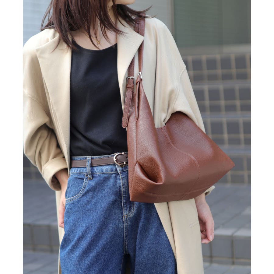 柔らかい質感のシュリンクPUレザーを使用し、おしゃれなダブルハンドバッグに!