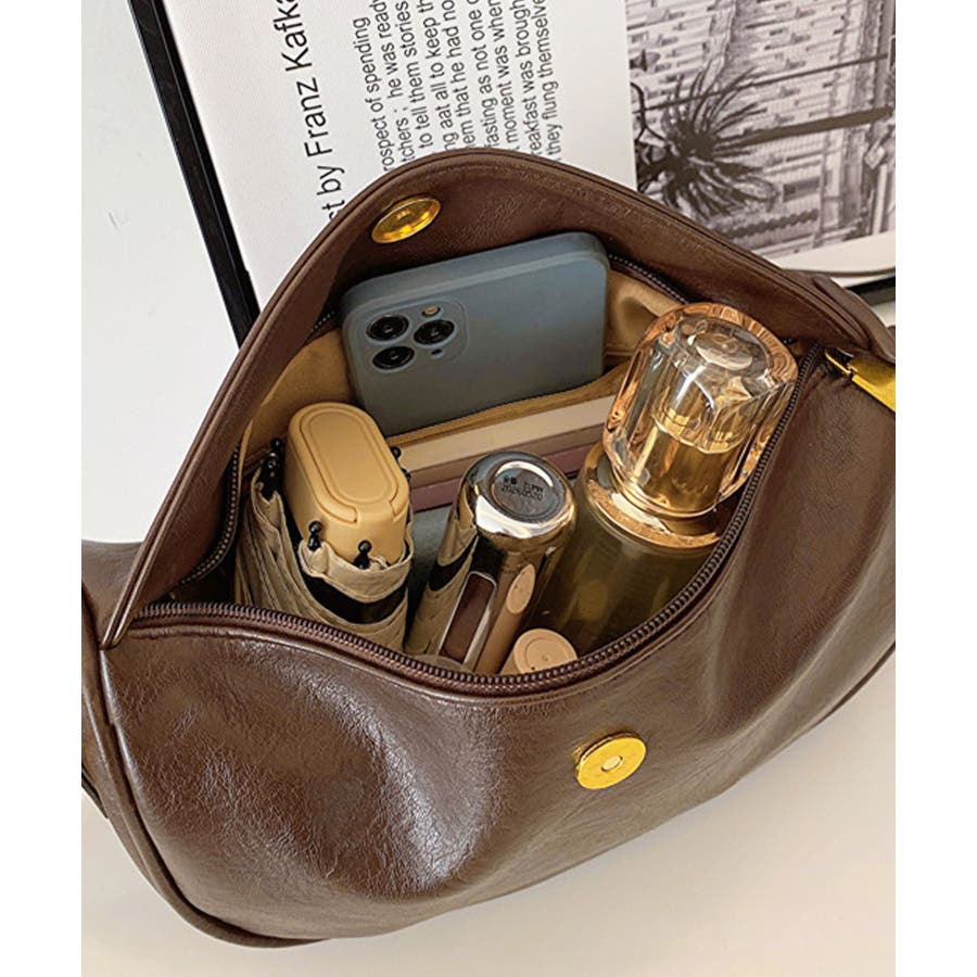 アンティークゴールドの金具使いがレトロさをプラスする、上品なショルダーバッグです。