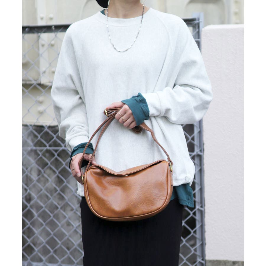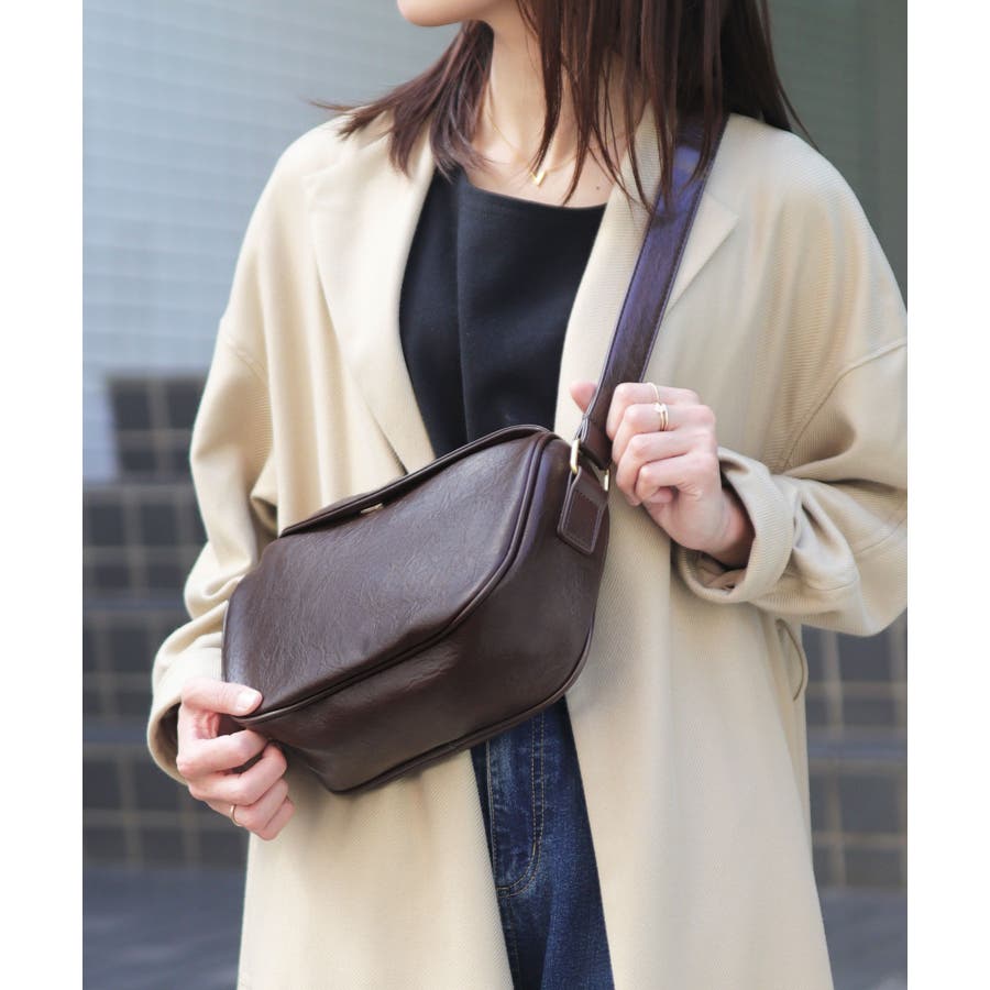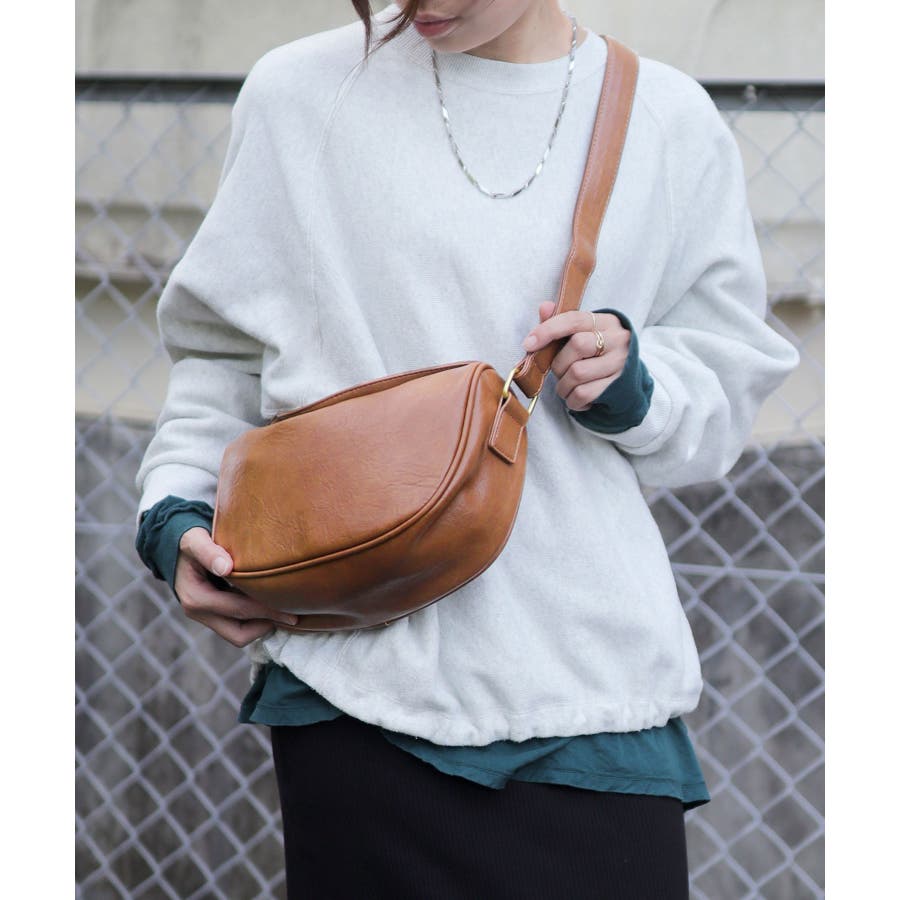 PUレザータッチラウンドワンショルダーバッグ/ミニバッグ。
