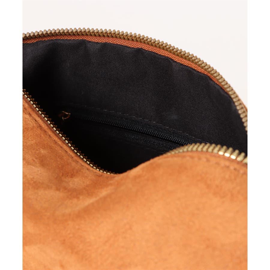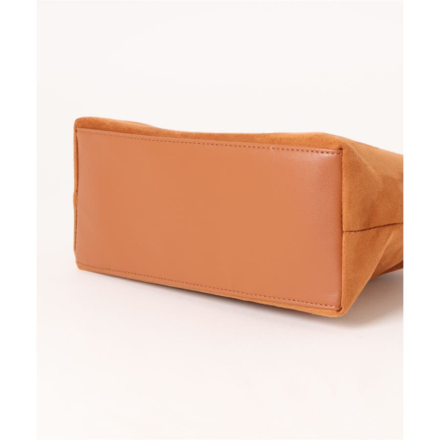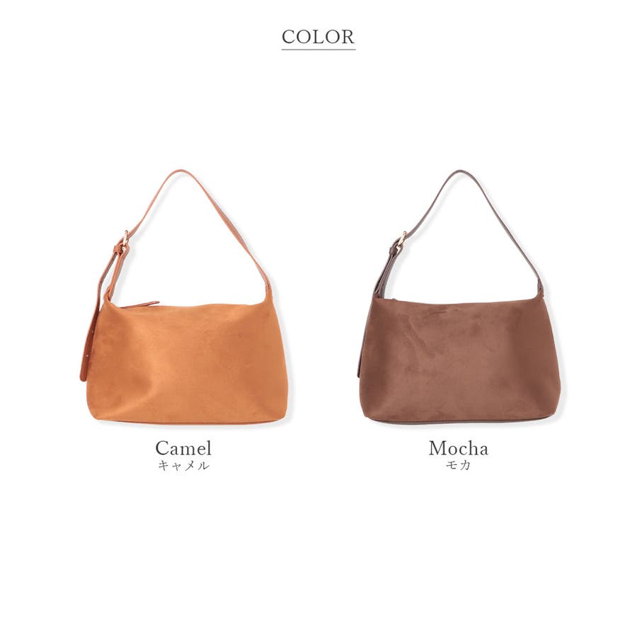 滑らかな質感のフェイクスエードを使用し、おしゃれなワンハンドルバッグに仕立てたハンドバッグ。