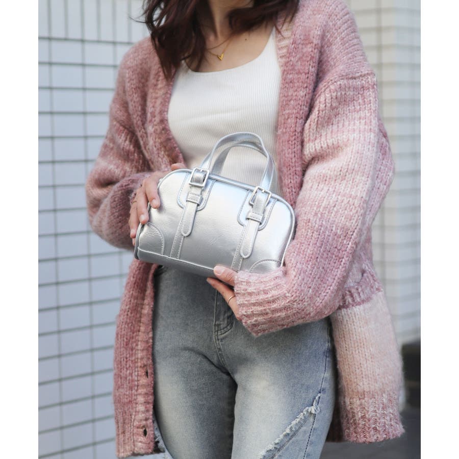 PUレザーライクベルトハンドルボストンバッグ/ハンドバッグ/ショルダーバッグ。