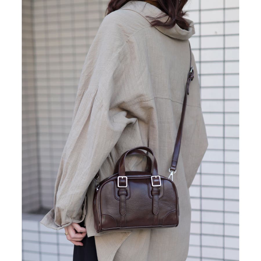 ワッシャー加工を施したPUレザーに、ベルトハンドルを組み合わせたレトロ可愛いショルダーバッグ!