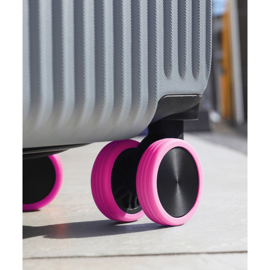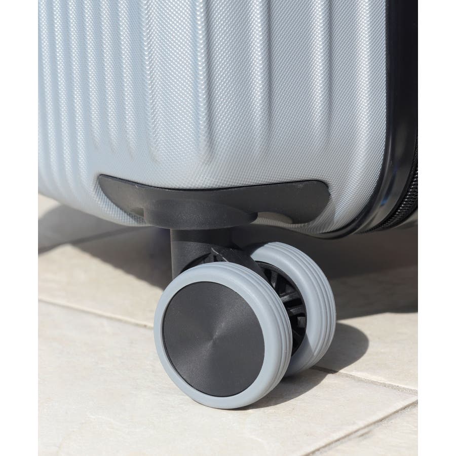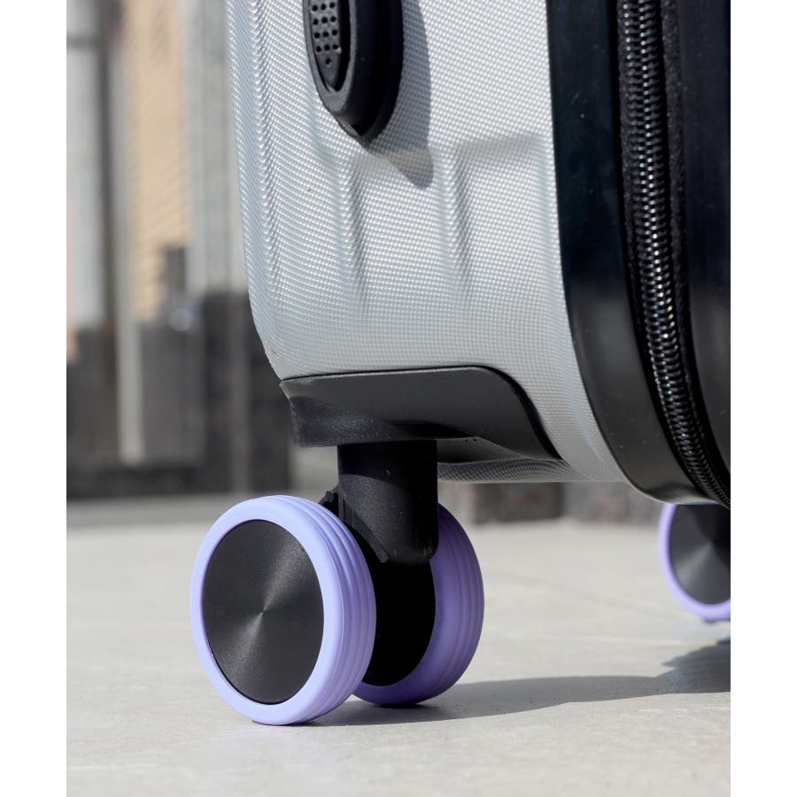 スーツケースが転がる際の不快なガラガラ音を軽減する効果があり、静かでスムーズな移動をサポートします。