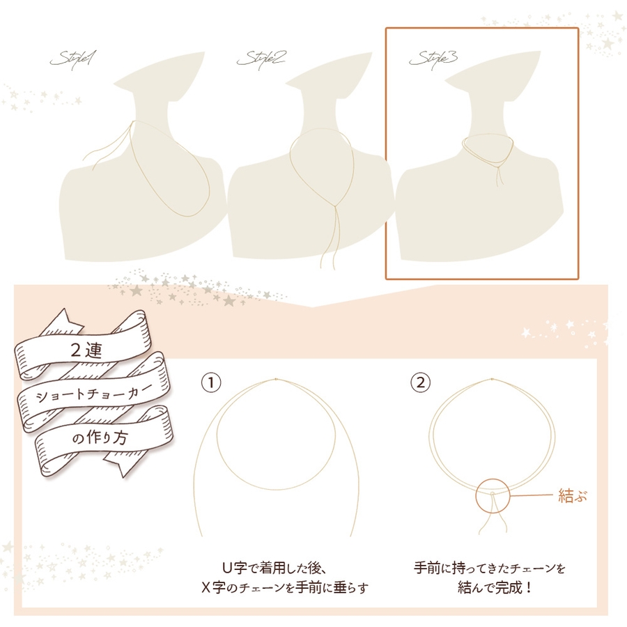 スライドボールを背面にもってきた状態で、フリンジ部分を前面に移動し、2連チョーカーとして