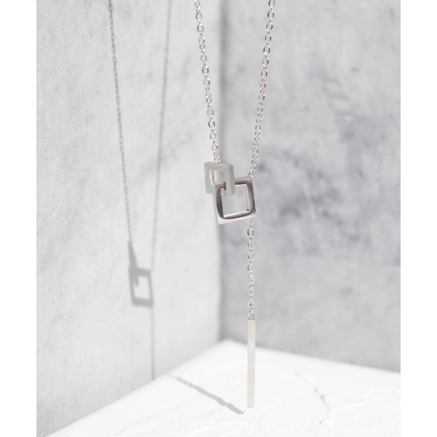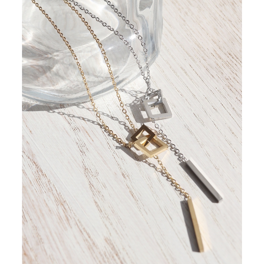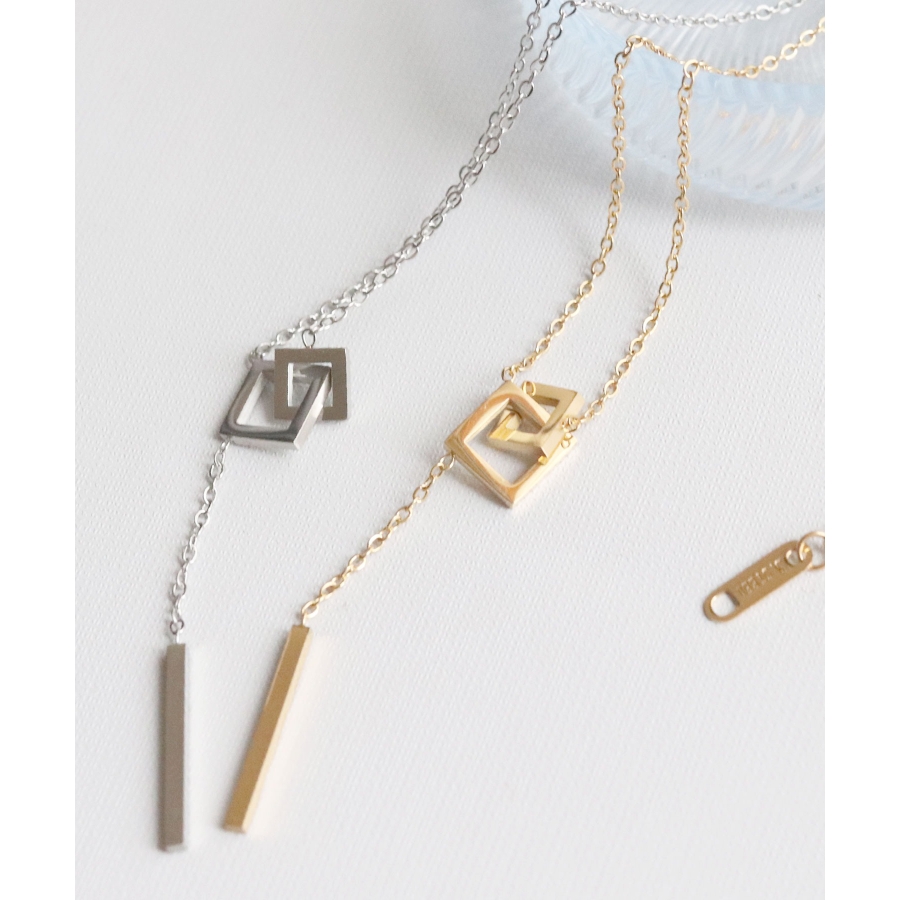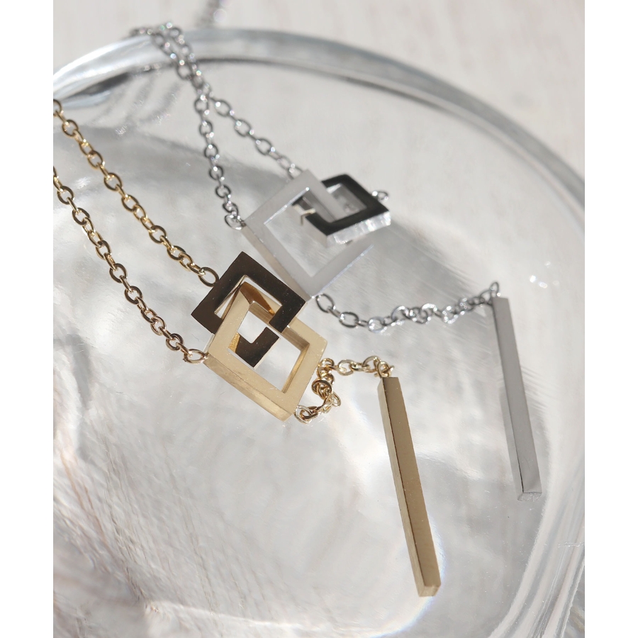 Wスクエアにスティックチェーンが揺れる、レディモードなデザイン。