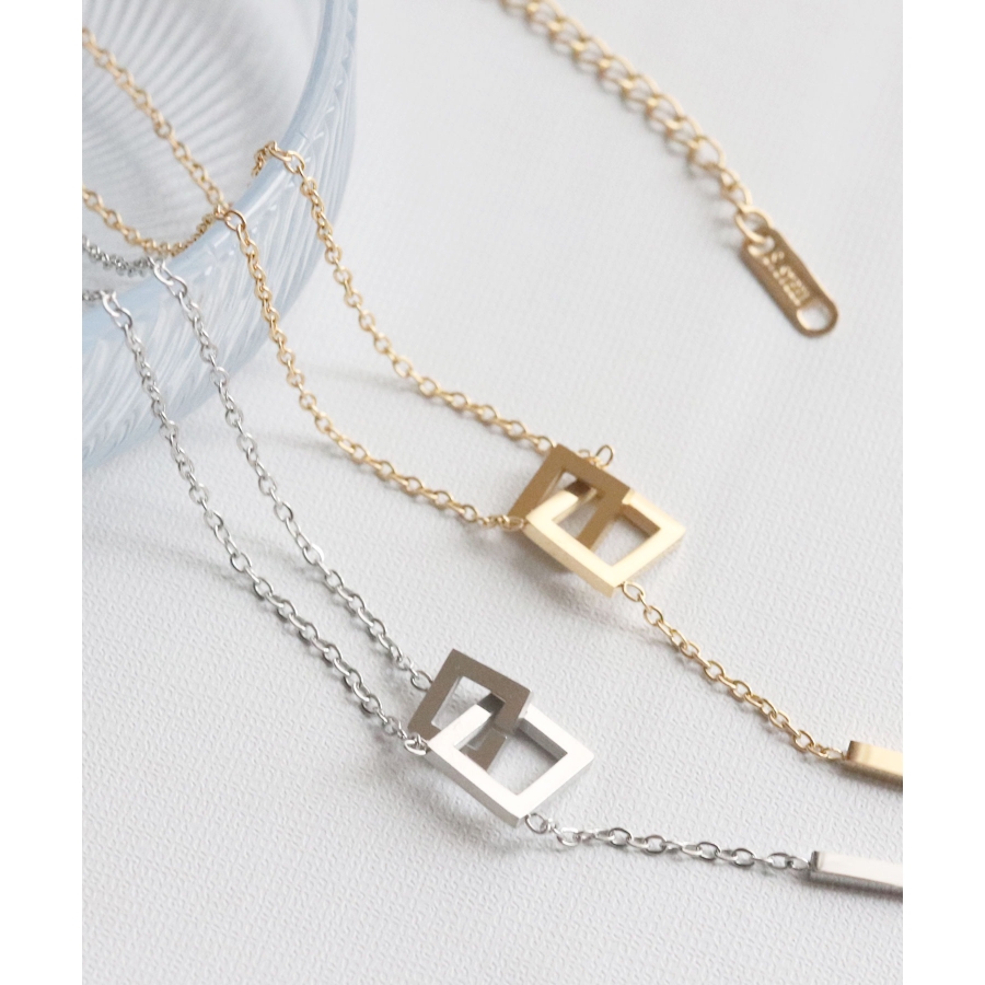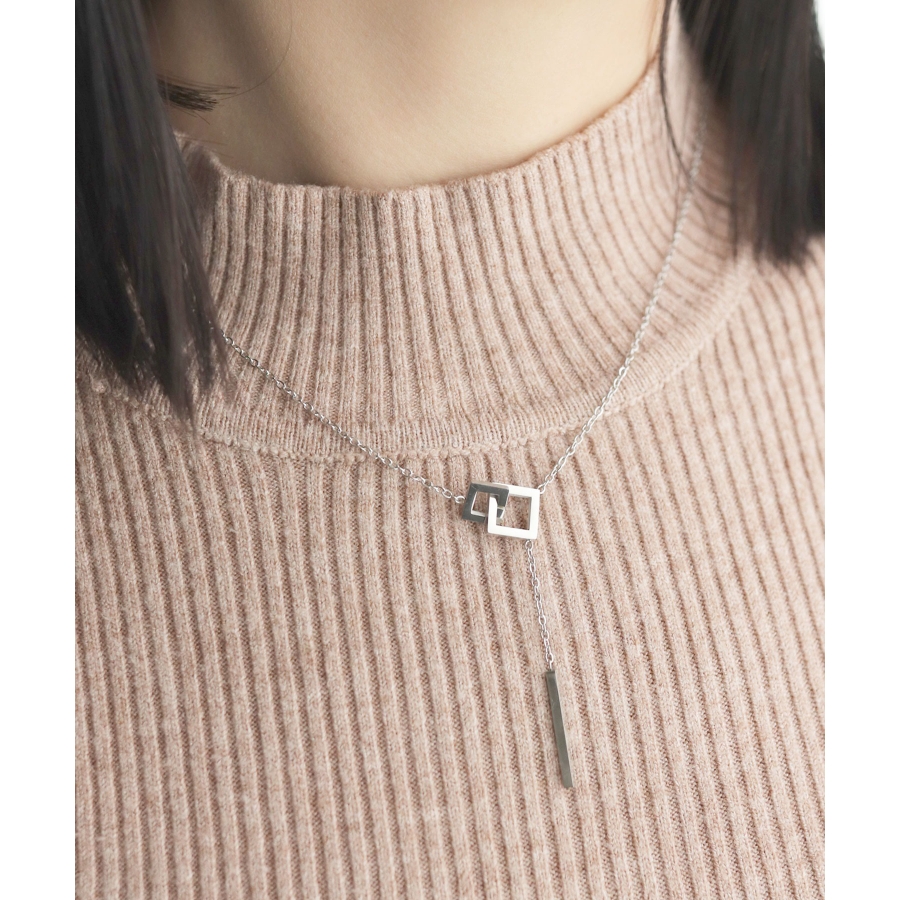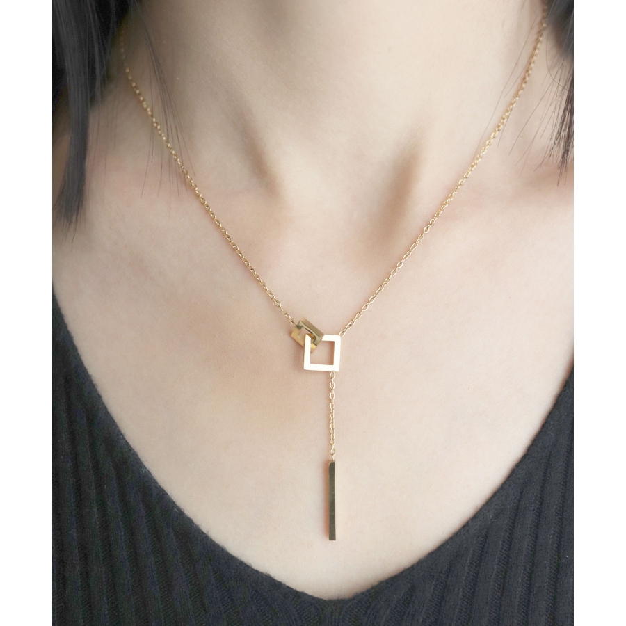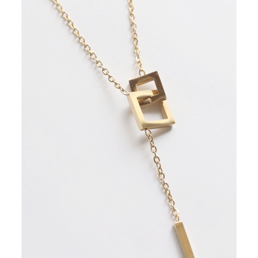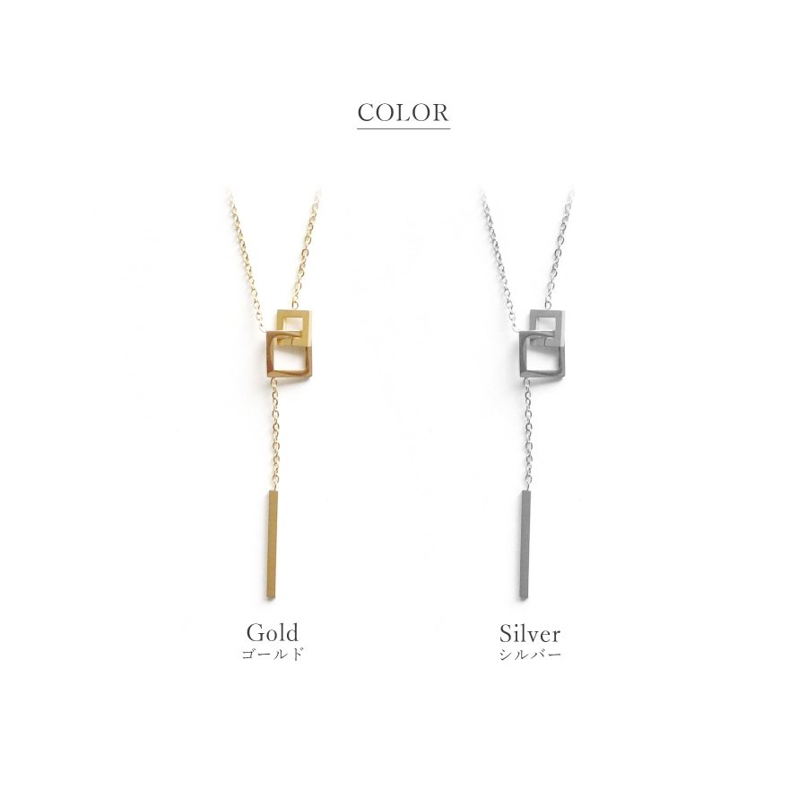 Wスクエアにスティックチェーンが揺れる、レディモードなデザイン。