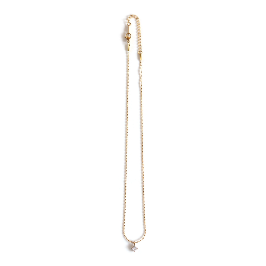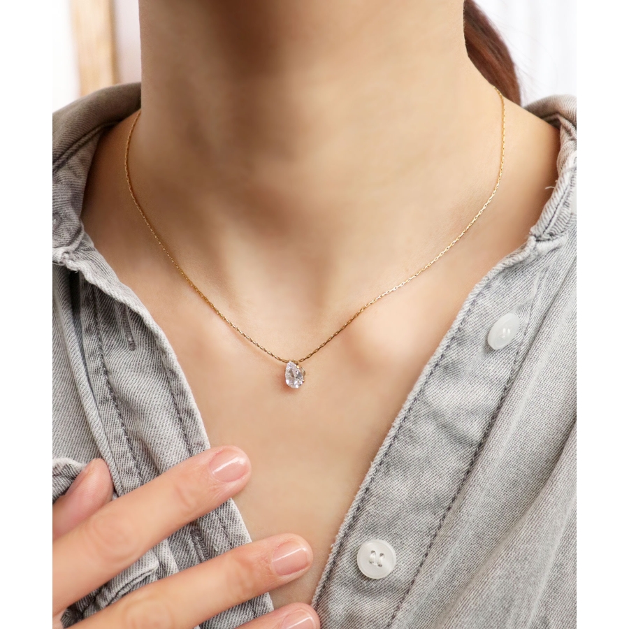 キラキラ輝くクリアビジューをトップにあしらったレディライクなデザインのネックレス。