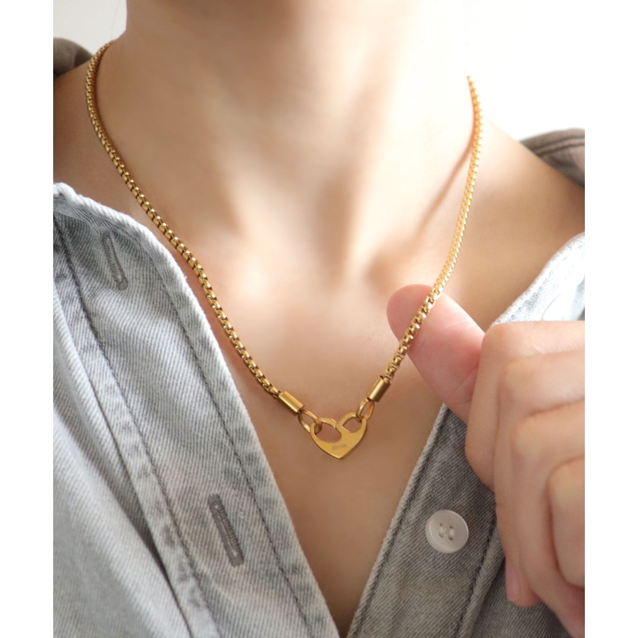 2mm幅のベネチアンチェーンにフラットなハートトップをあしらった大人かわいいデザインのネックレス。