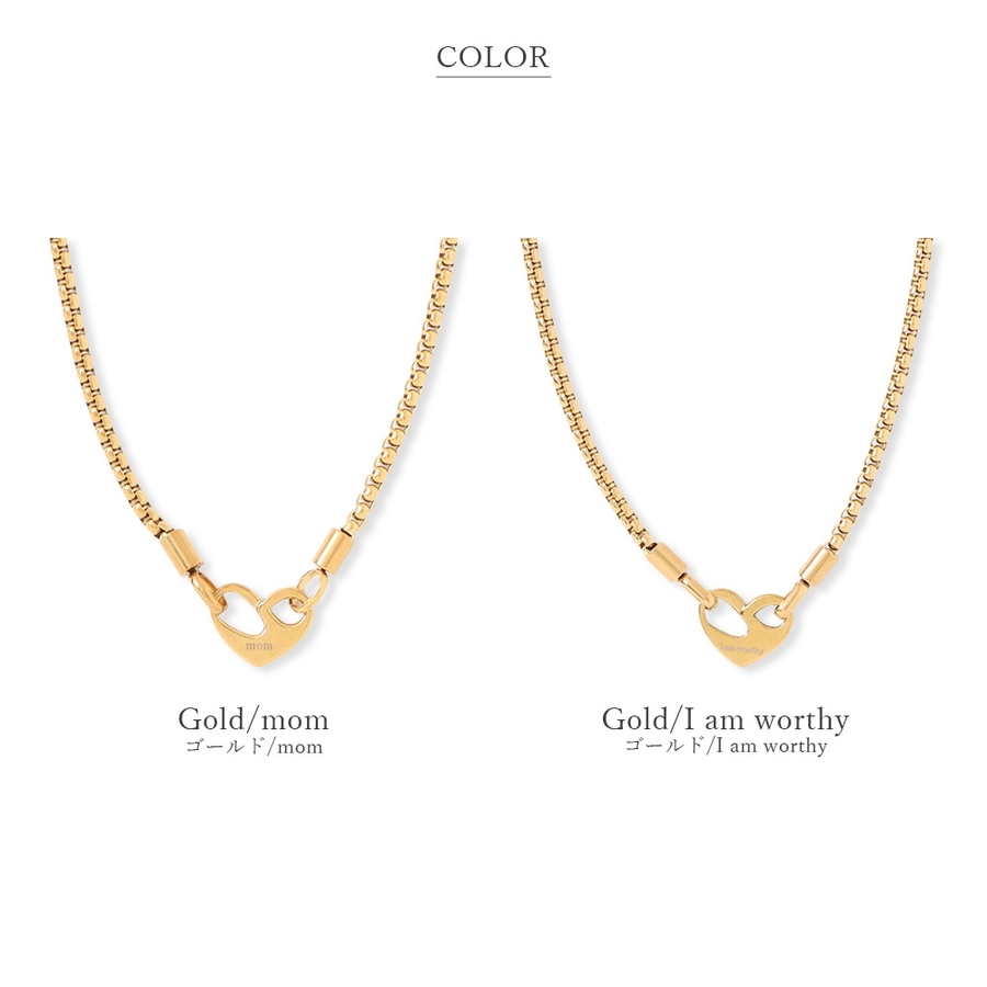 ハートモチーフには「mom」「I am worthy」の2種類の印字入り。