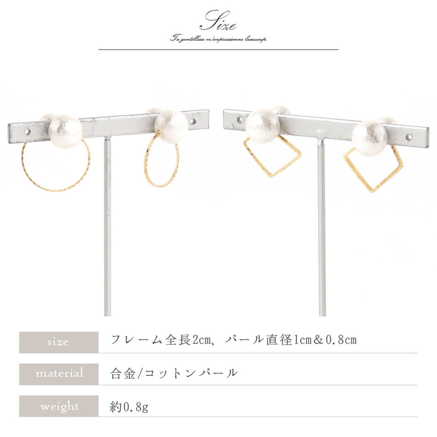 サイズ:フレーム全長2cm、パール直径1cm&0.8cm
