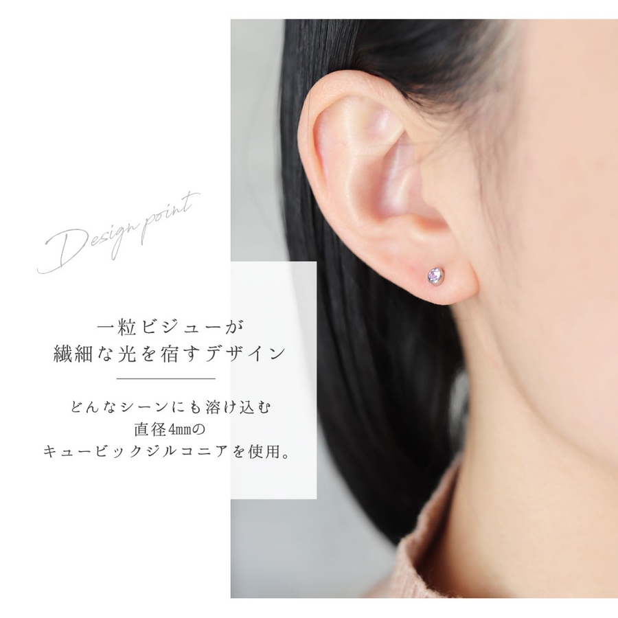 一粒のキュービックジルコニアがさりげない輝きを与えてくれる華奢ピアス。