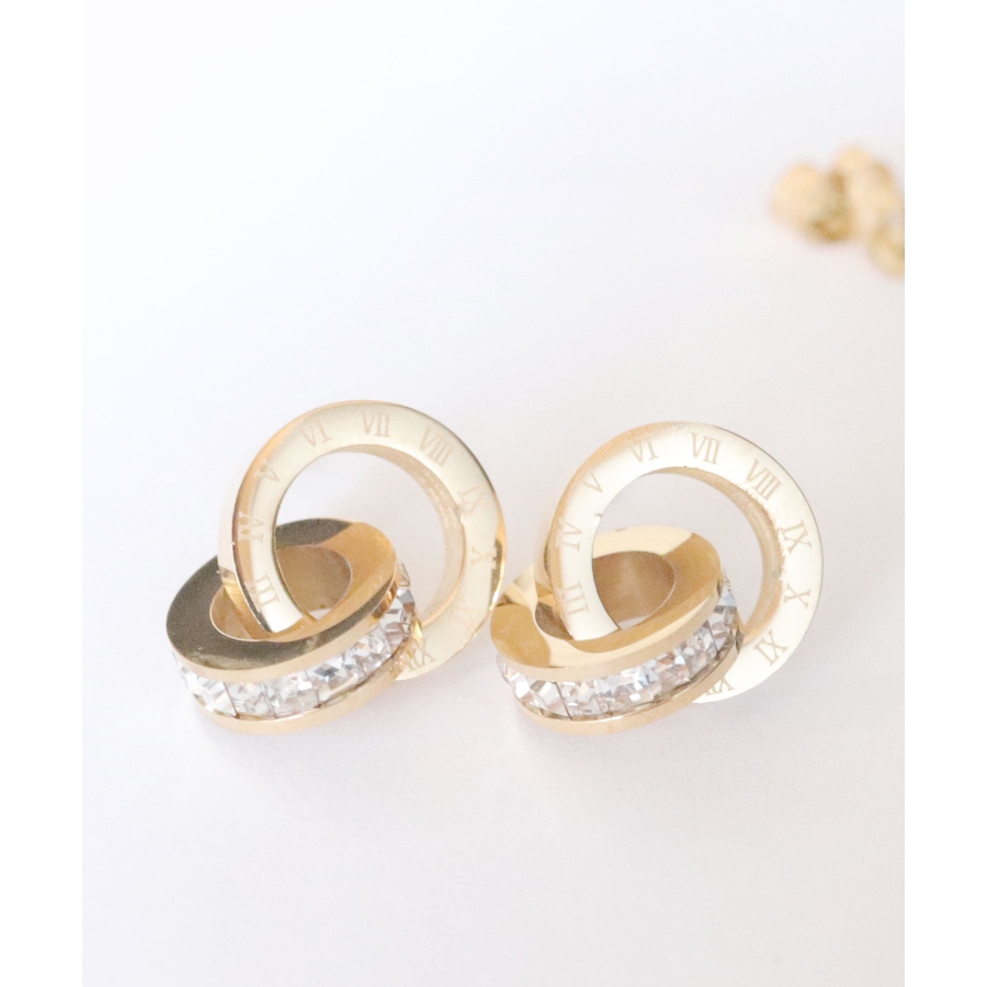 ローマデザインリングにビジューリングが連なった、エレガントなデザイン。