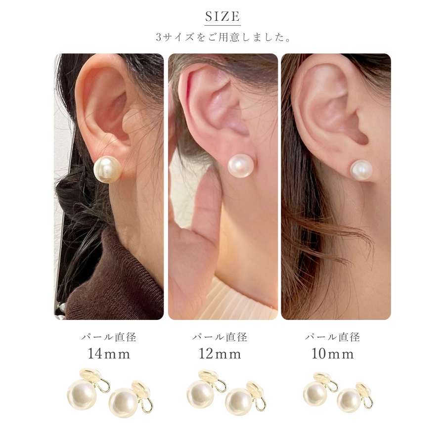 耳たぶも小さいのでちょっと、留具で痛みが出そう。さん (30代 / 女性 )購入アイテム:サイズ 10mmカラー ホワイトパール - 大きい