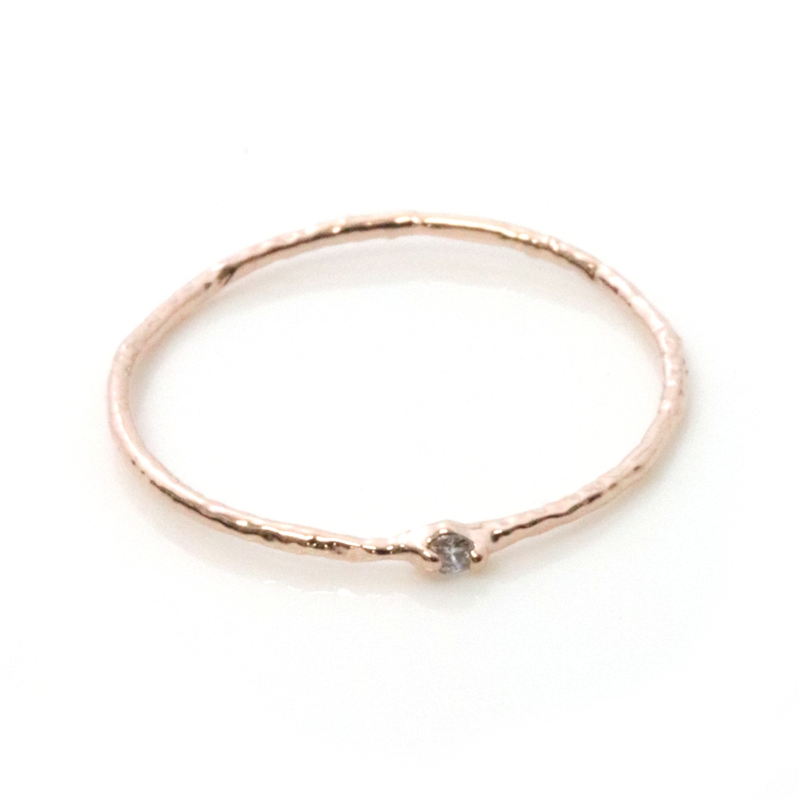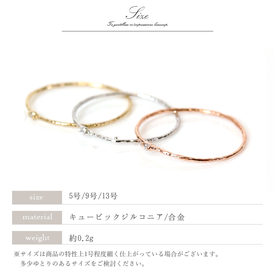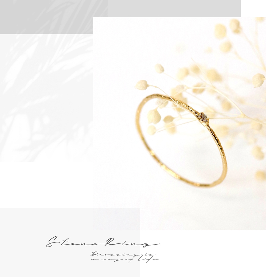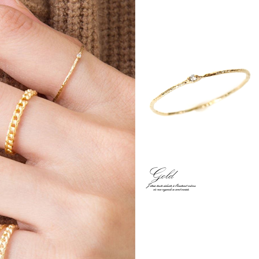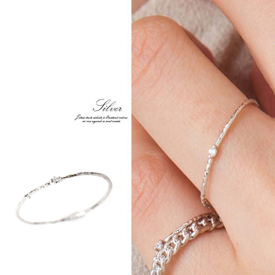 シャギーラインの入った極細ジルコニアリングです。肌馴染みの良いシャギー加工が入っているので、シンプルに一つでもOK、重ね付けも相性抜群です。