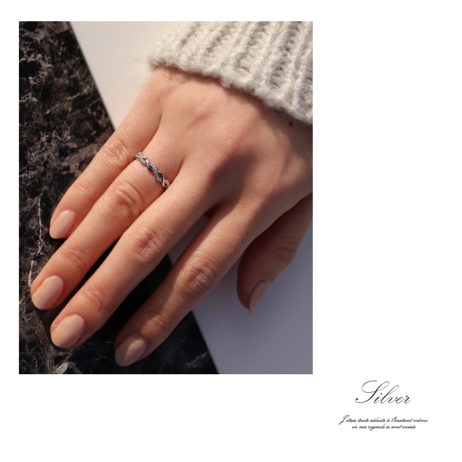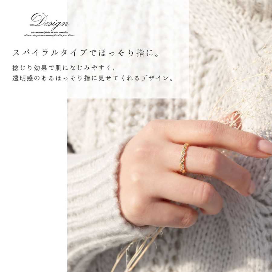 捻じり効果で肌になじみやすく、透明感のあるほっそり指に見せてくれるデザイン。