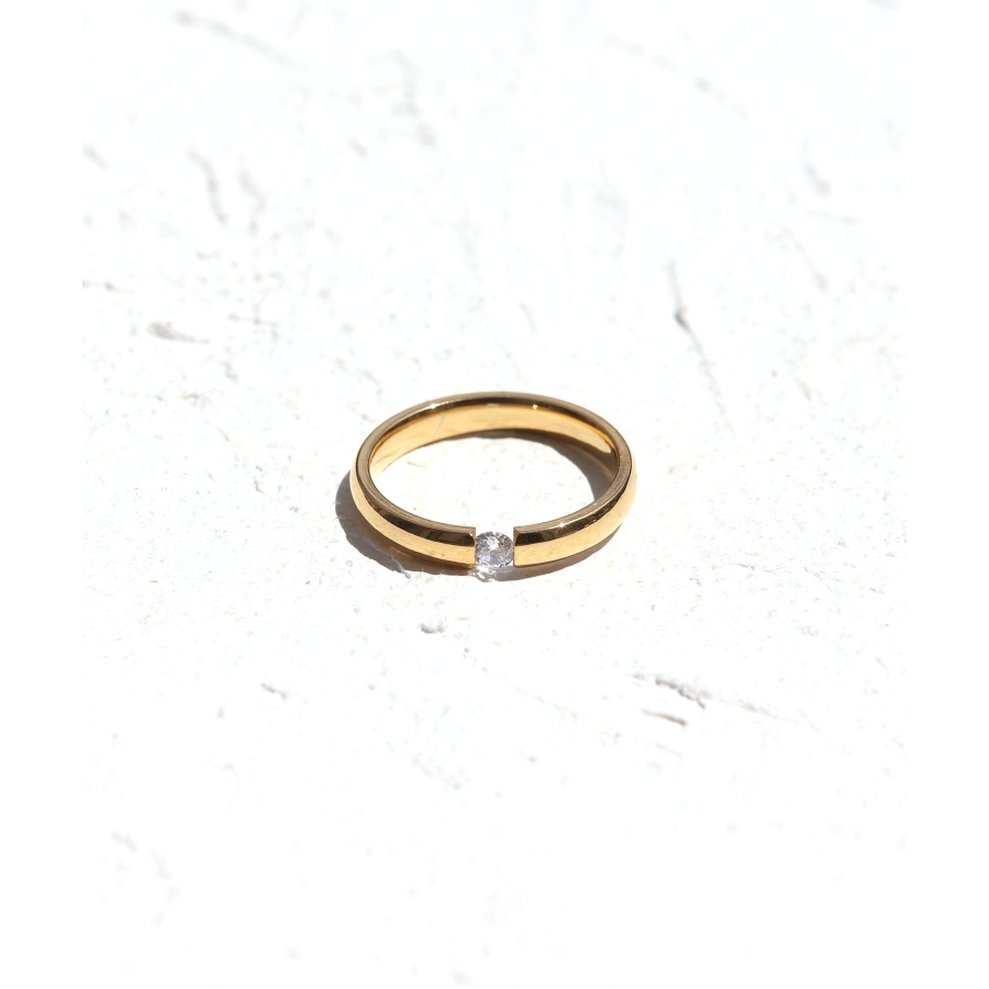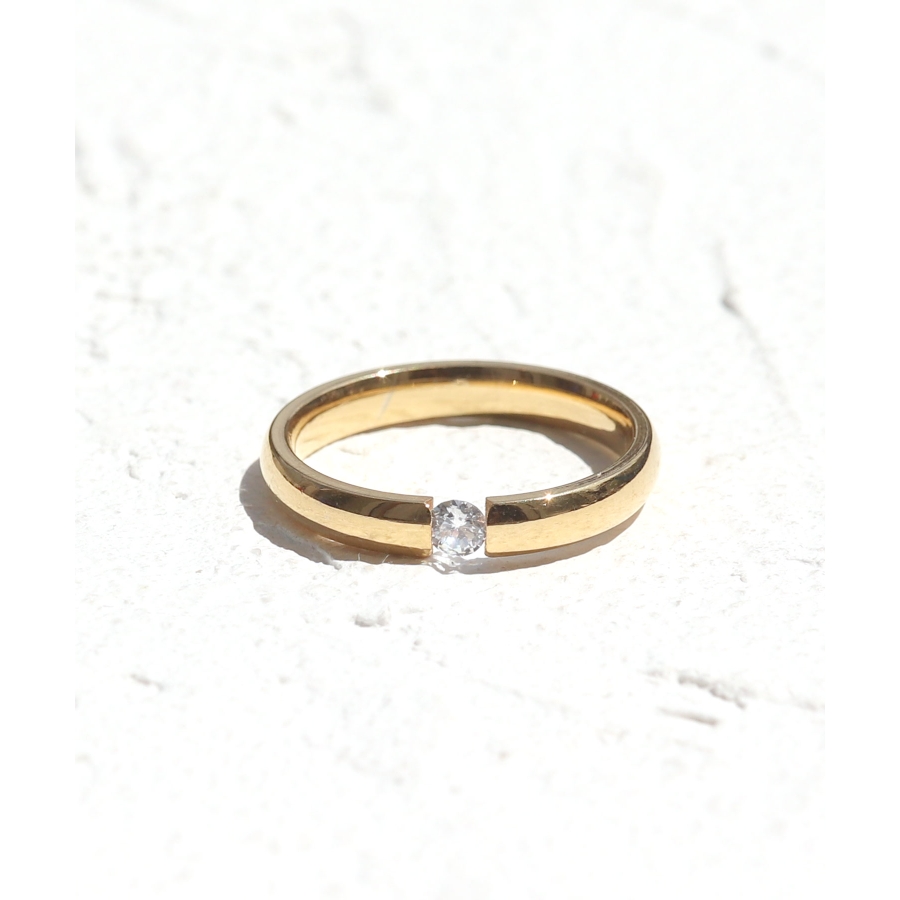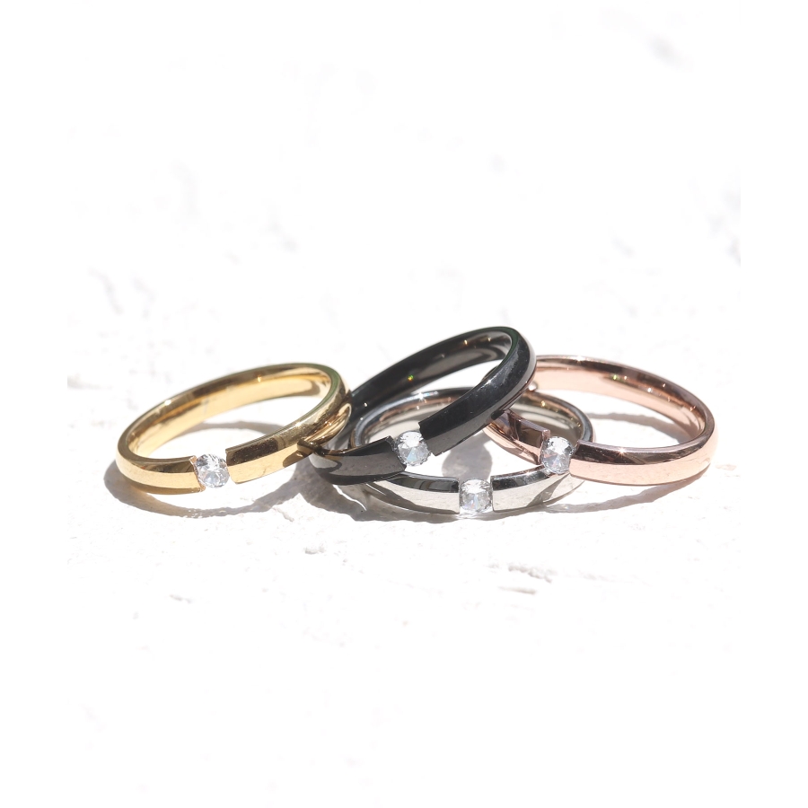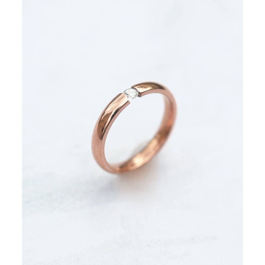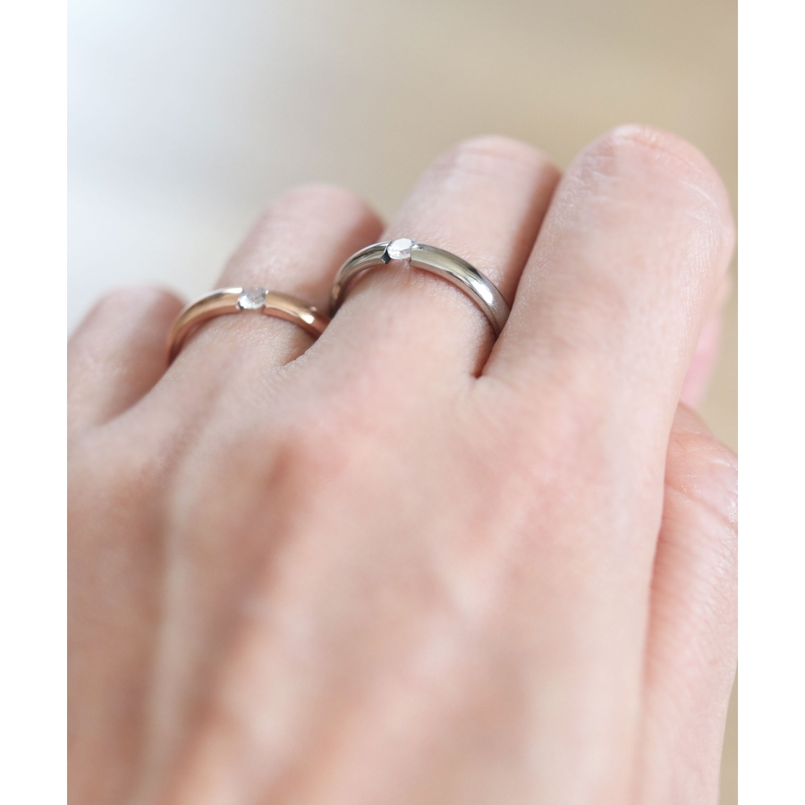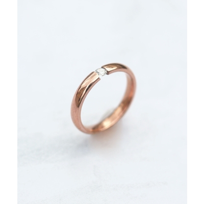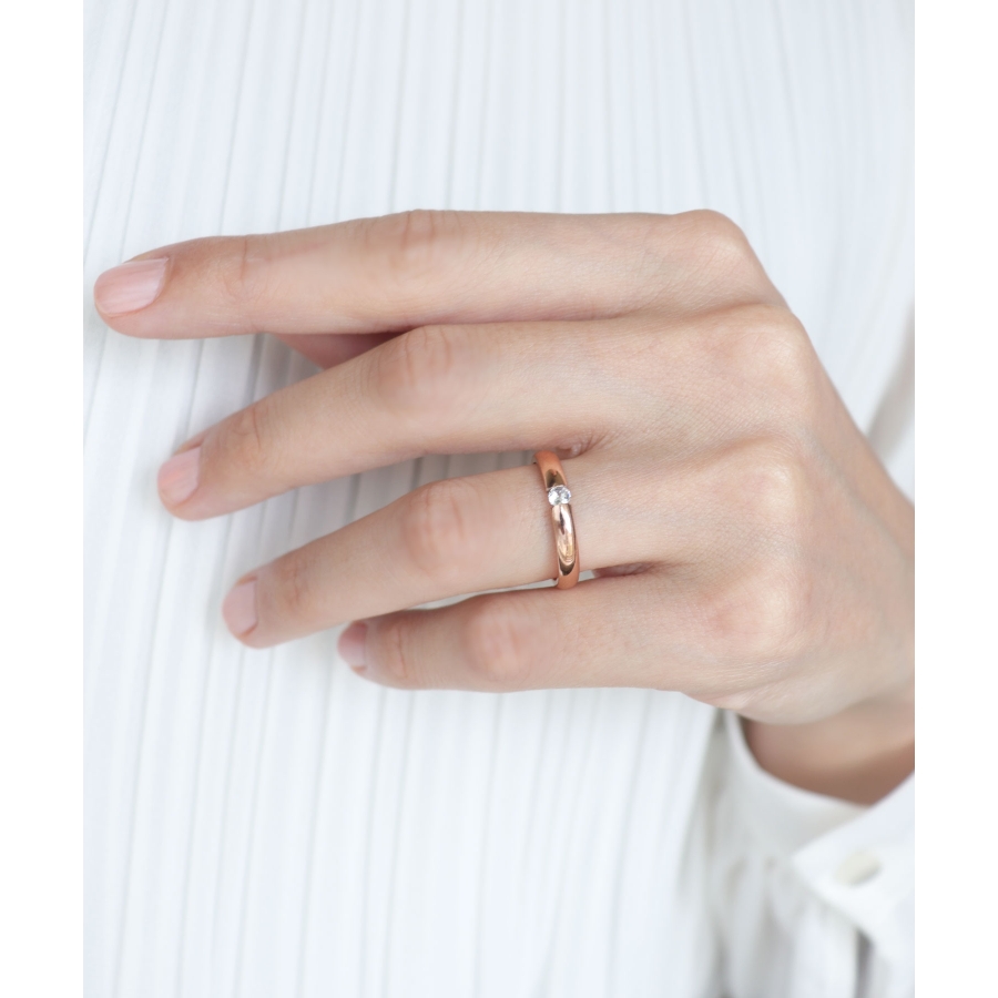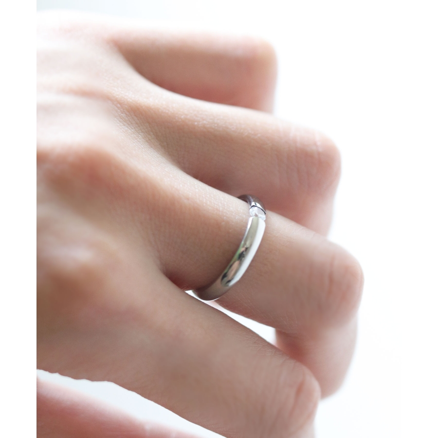 小ぶりな一粒ダイヤに、程よい光沢が大人クールな印象のリング。