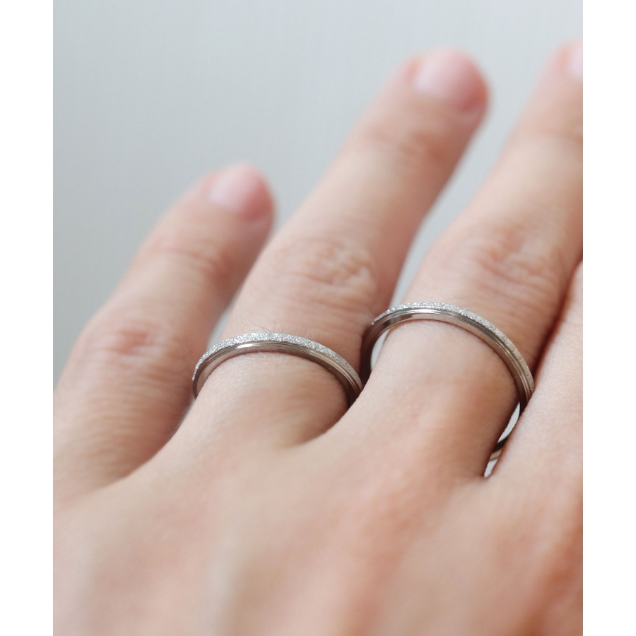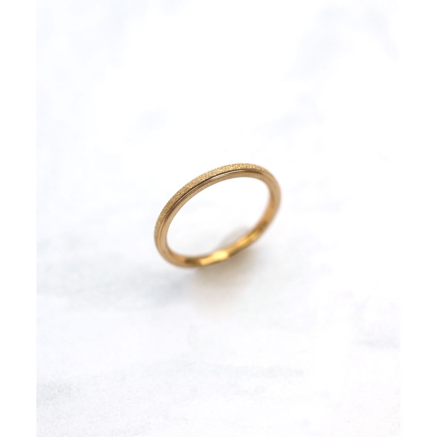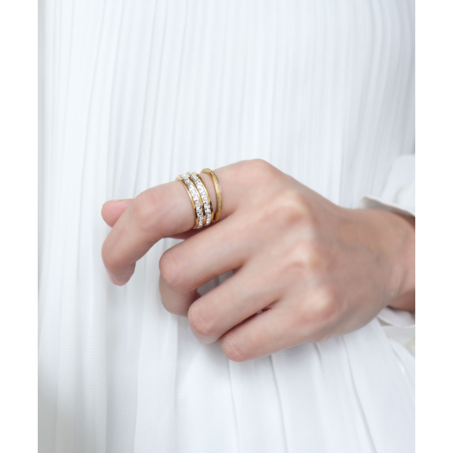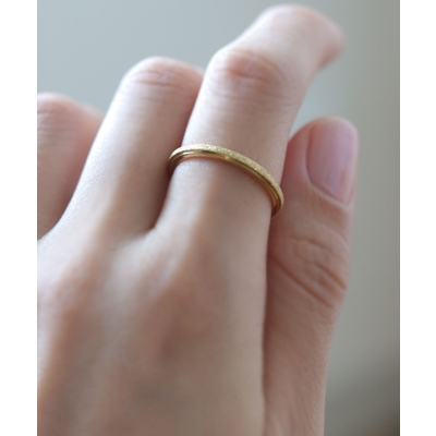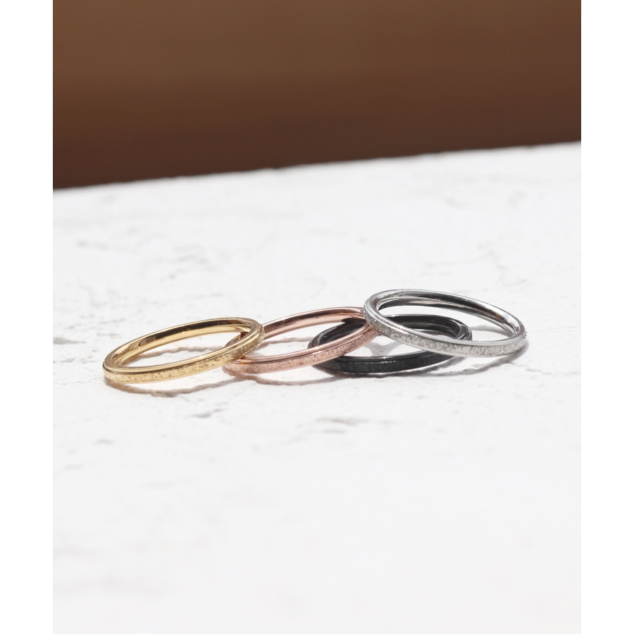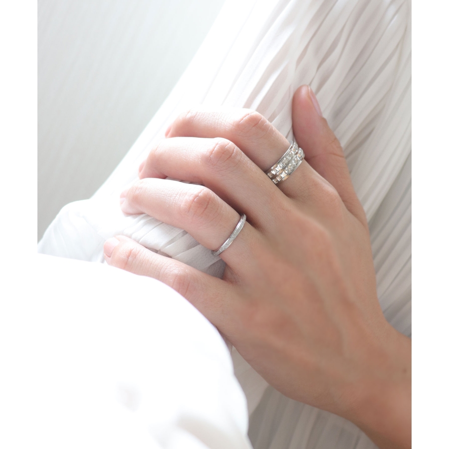 スターダスト加工に、シャープなボリュームがこなれた印象のリング。
