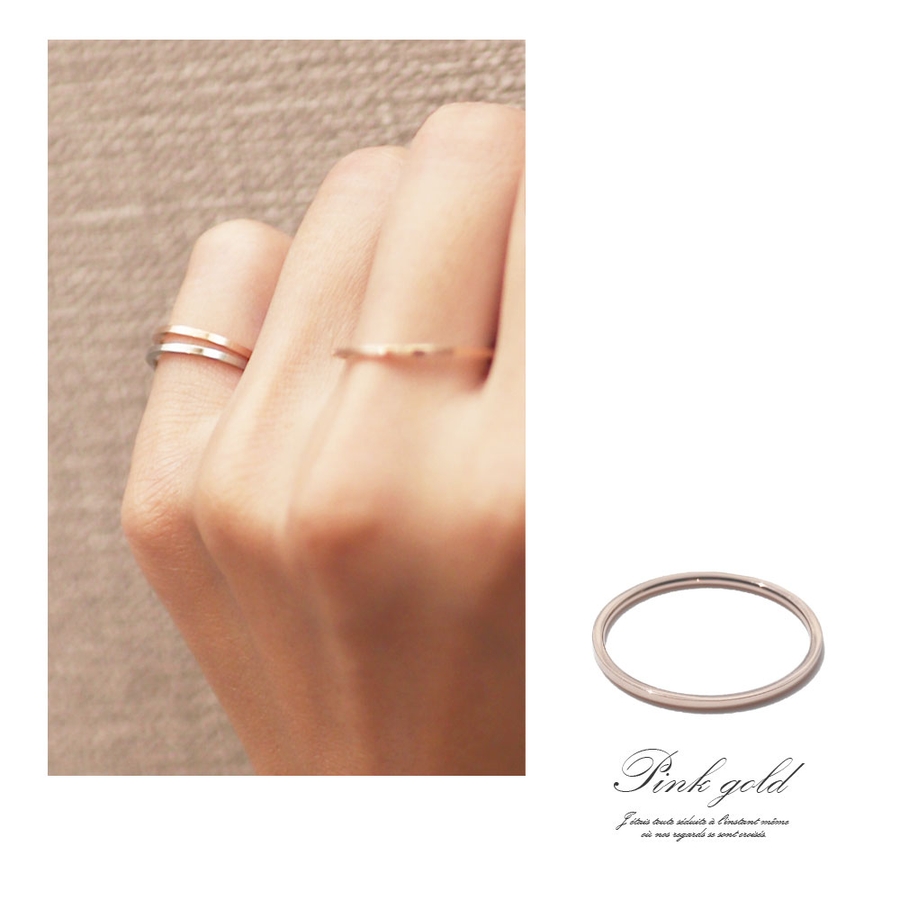 定番シンプルな細身リングは、1本持っているとアレンジの幅が広がるアイテムです。