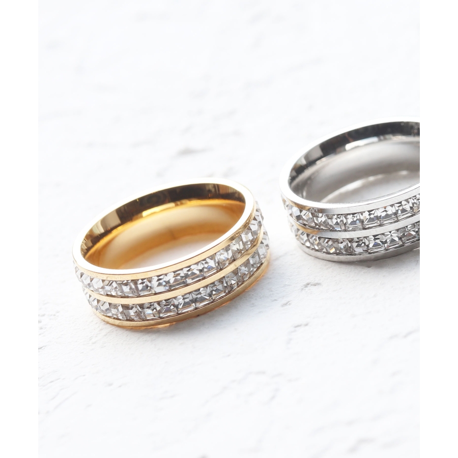 存在感のあるダブルラインリングが、手元のアクセントになります。