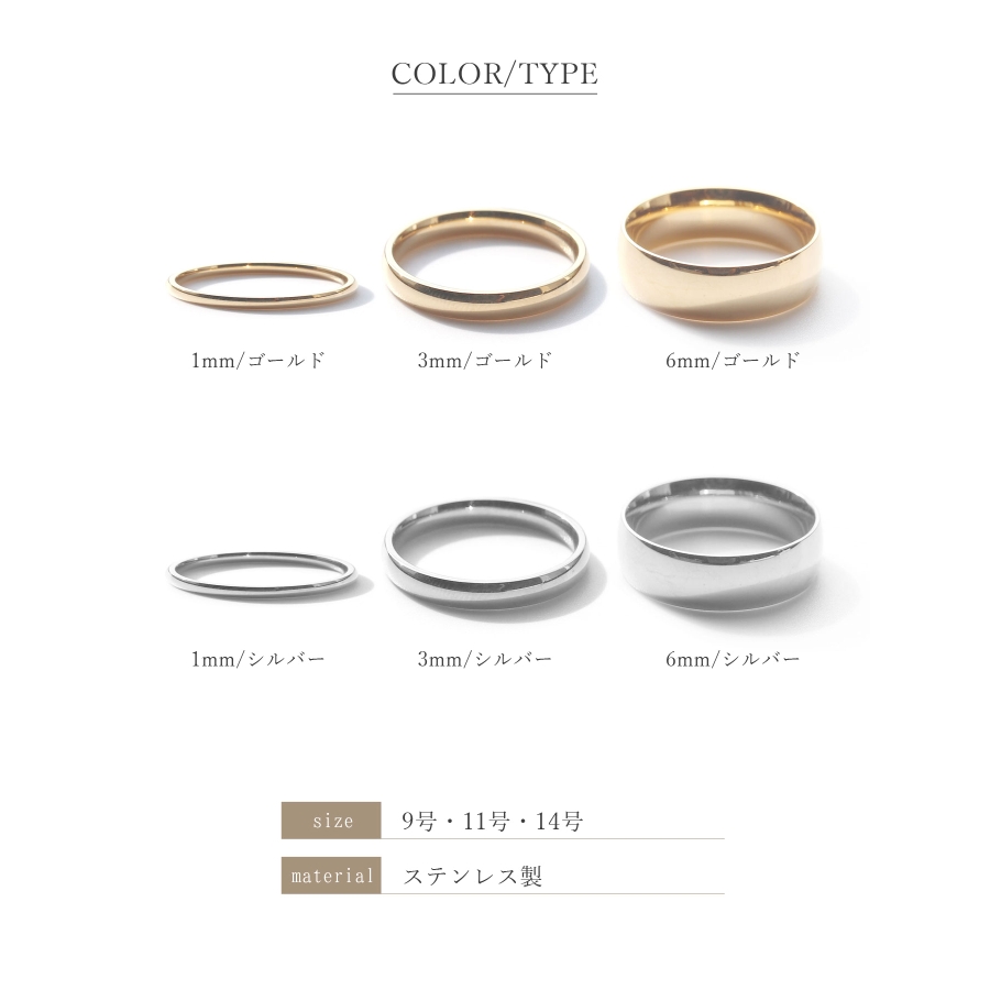 太めの6mm、程よいボリュームの3mm、華奢見えする1mmの3タイプをご用意しました。