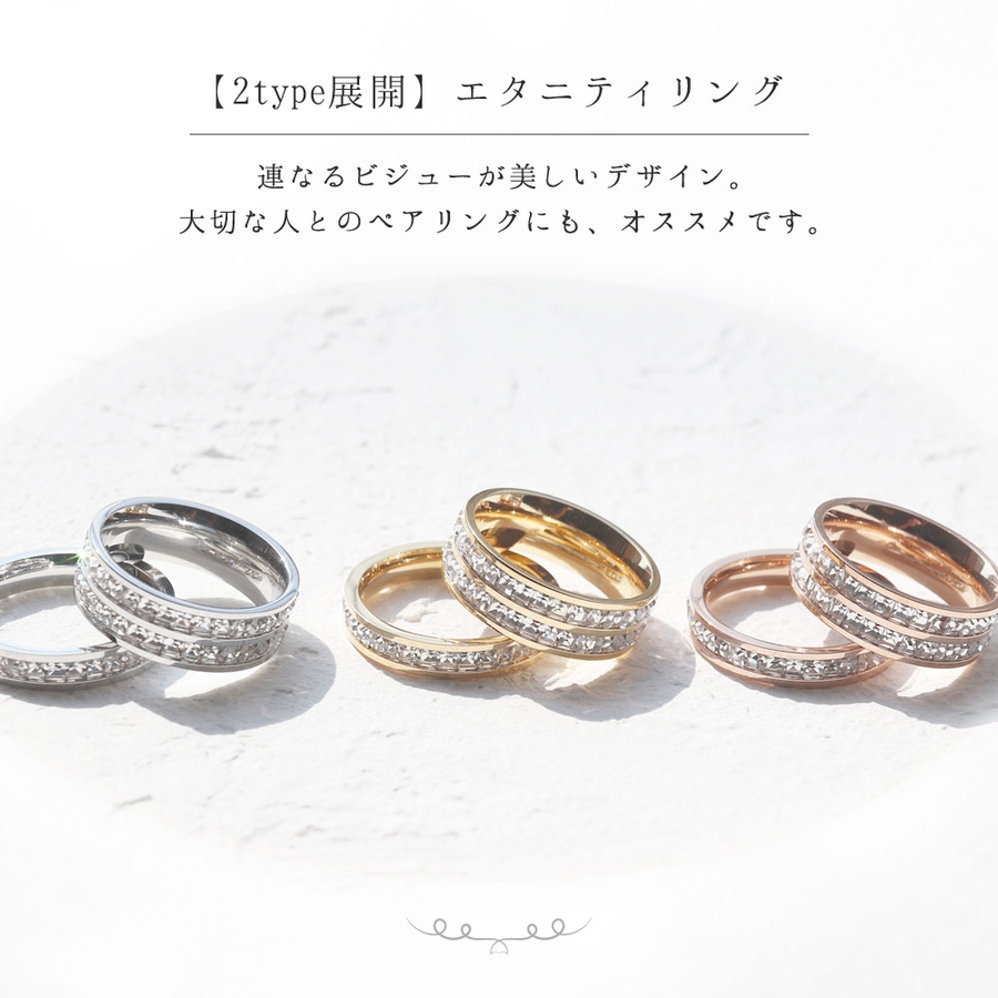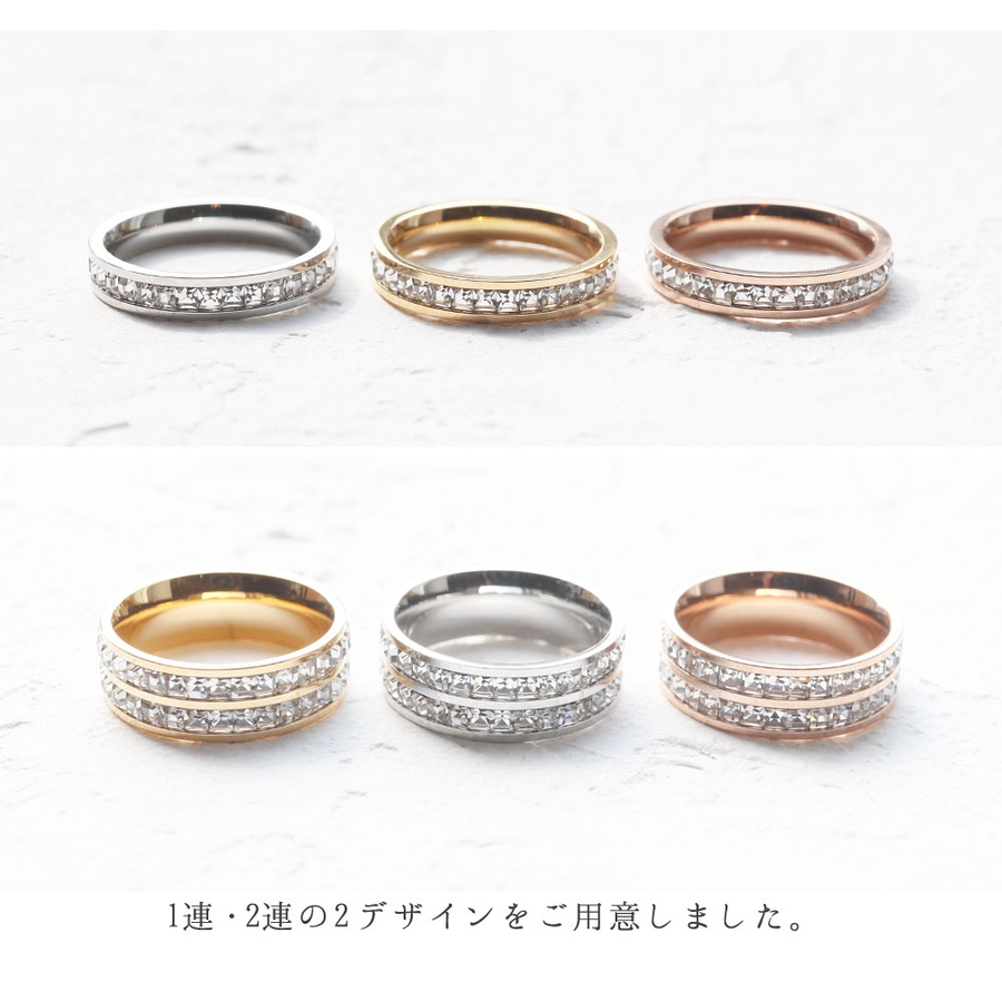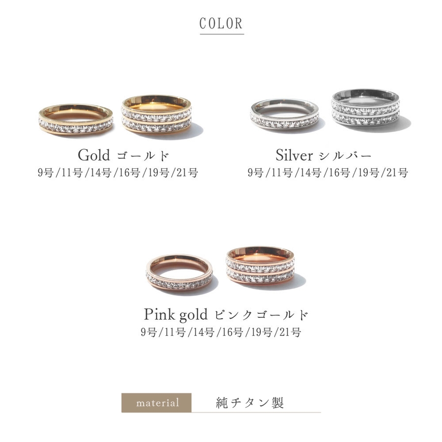 サイズ:【1連】幅:4mm/21号・19号・16号・14号・11号・9号【2連】幅:7mm/21号・19号(ピンクゴールドのみ)・18号・16号・14号・11号・9号