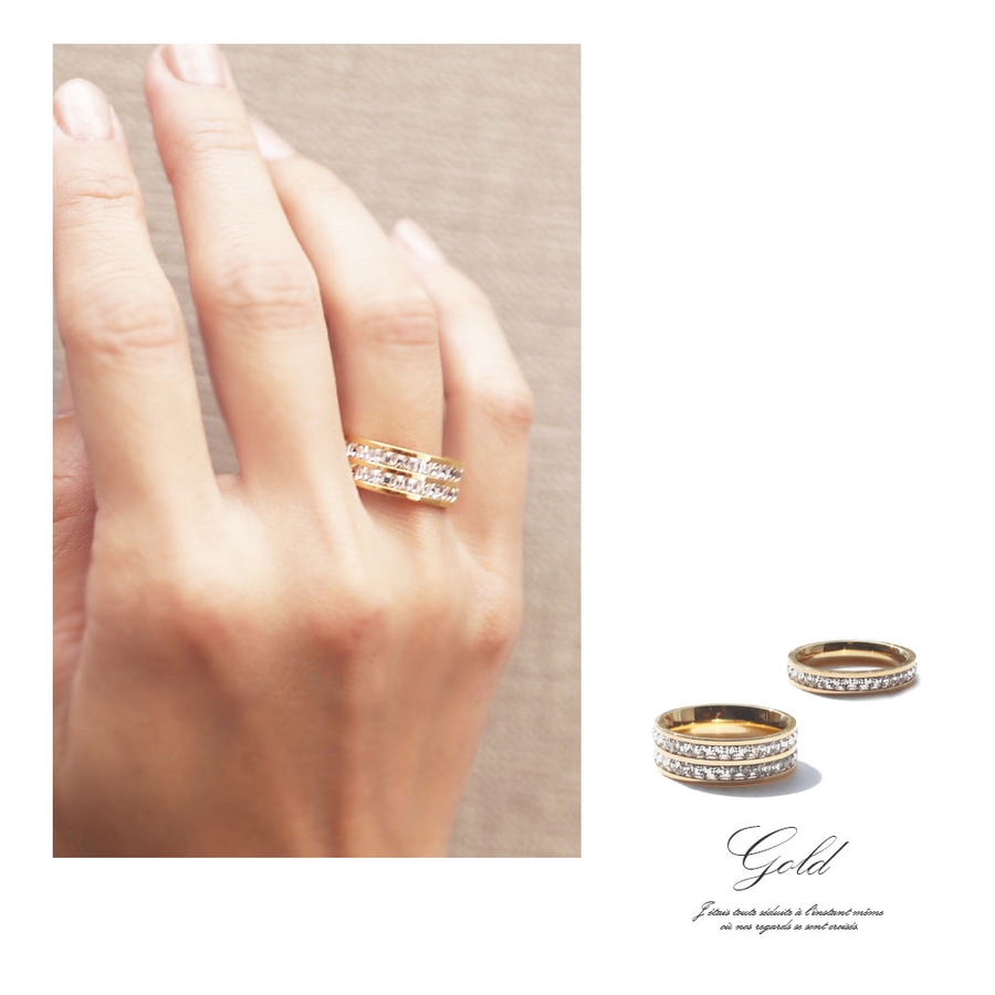 存在感のあるダブルラインリングが、手元のアクセントになります。