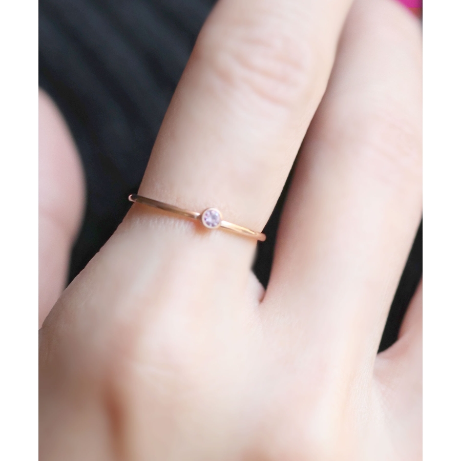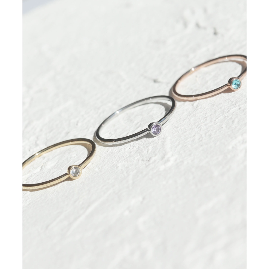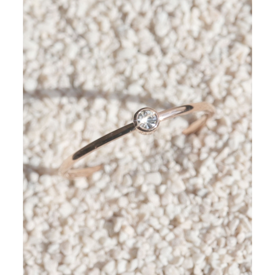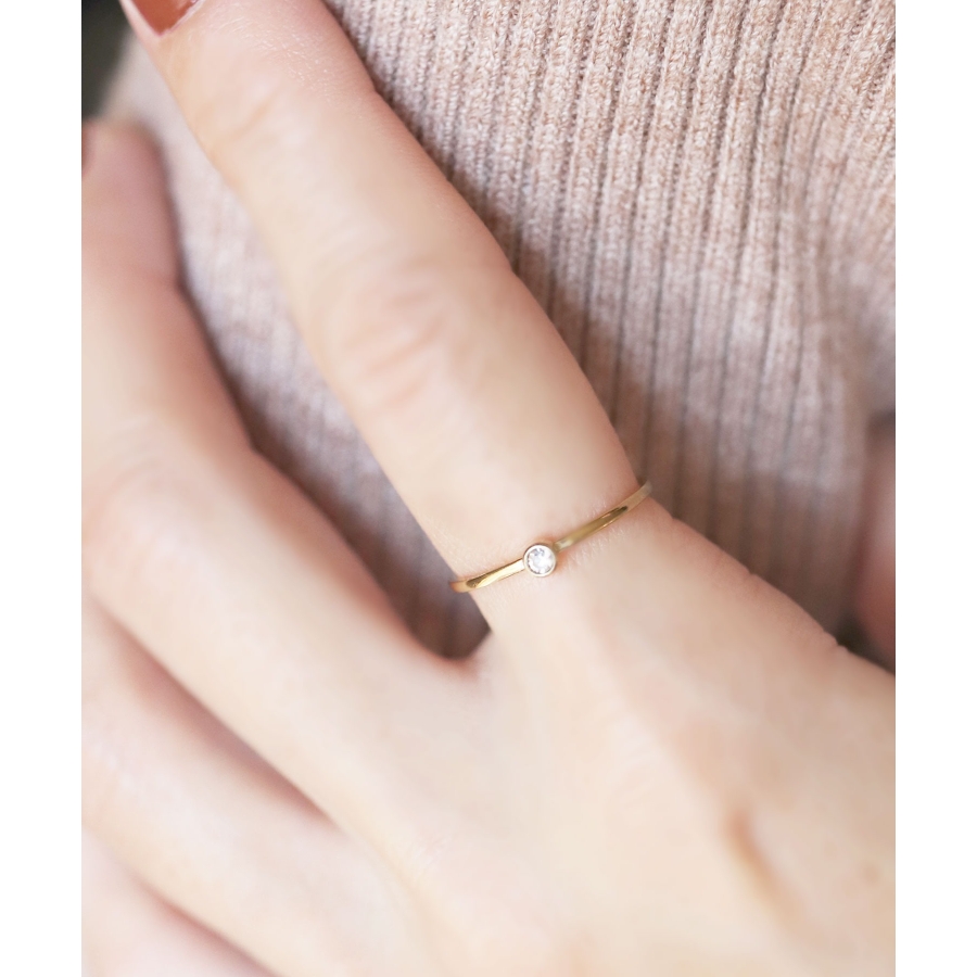 細みリングに1粒のジルコニアを添えたレディライクなリング。