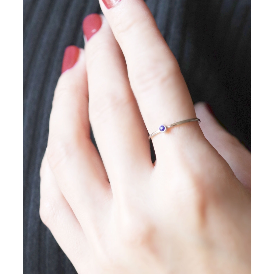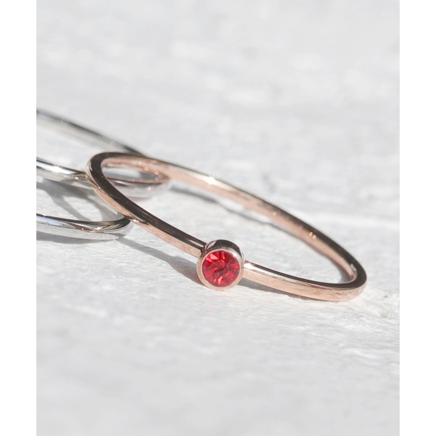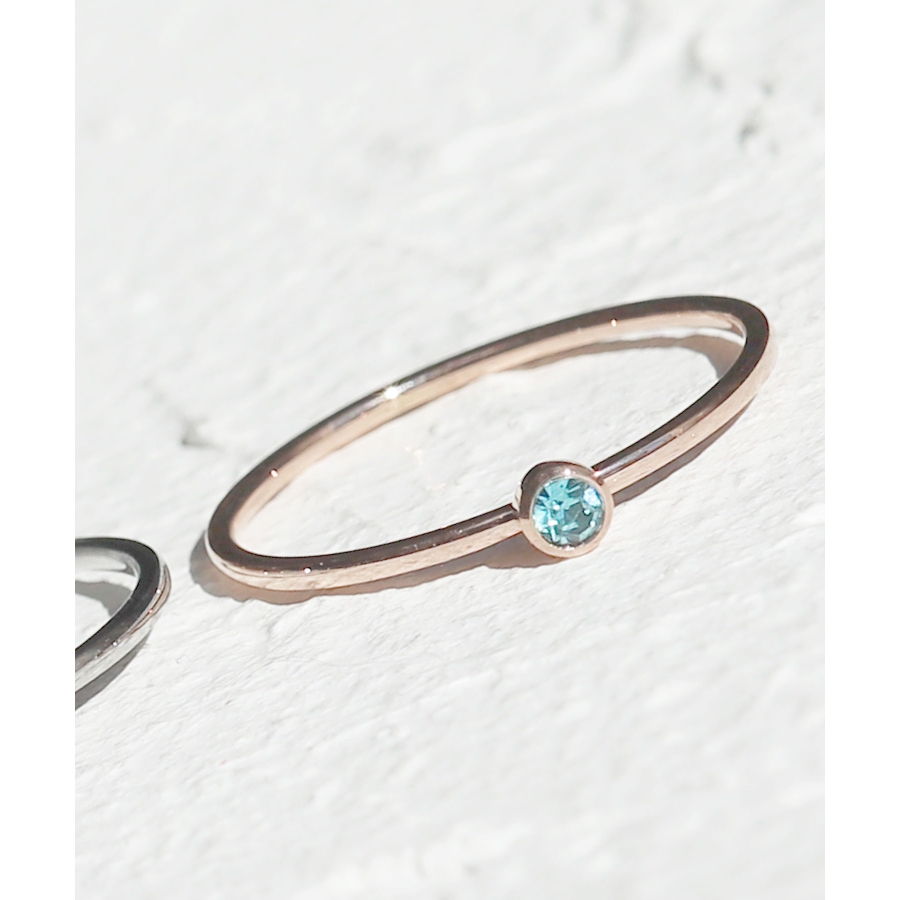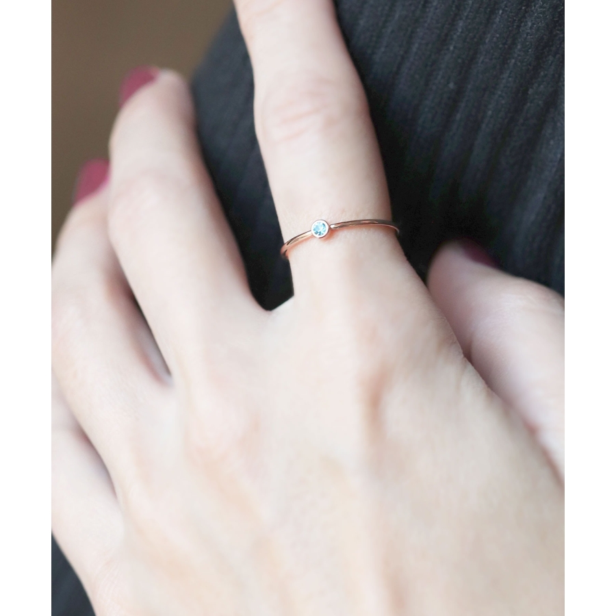 細みリングに1粒のジルコニアを添えたレディライクなリング。