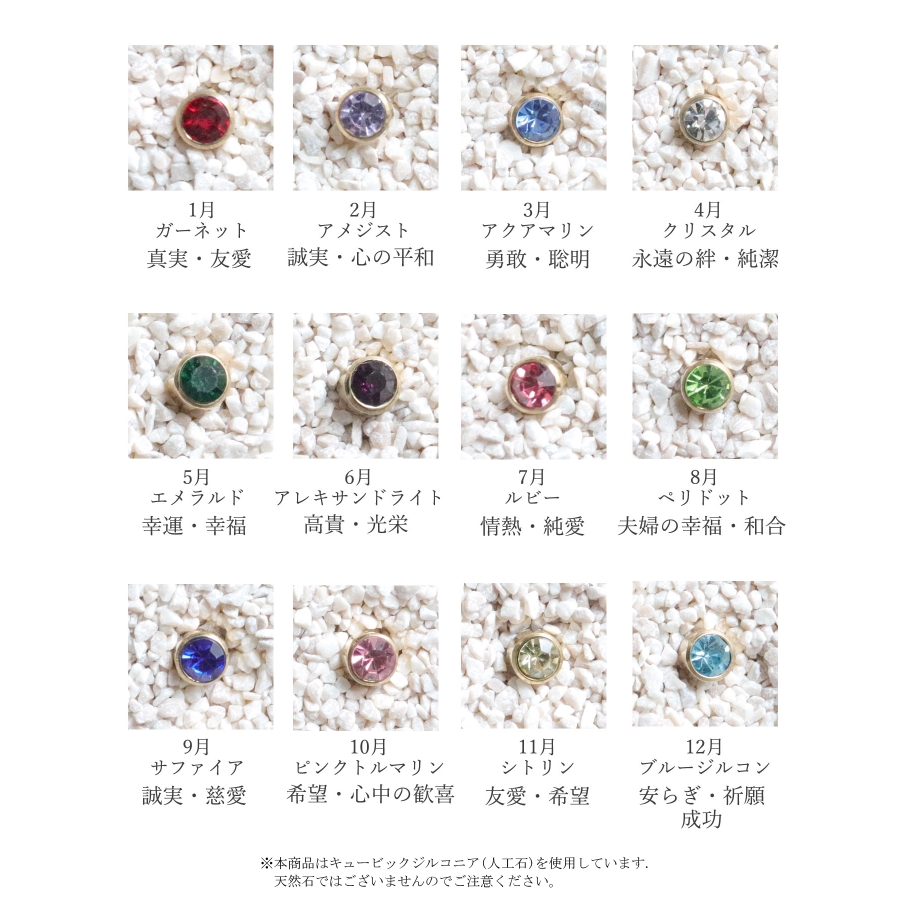 | タイプ | 1月ガーネット / 2月アメジスト / 3月アクアマリン / 4月クリスタル / 5月エメラルド / 6月アレキサンドライト / 7月ルビー / 8月ペリドット / 9月サファイア / 10月ピンクトルマリン / 11月シトリン / 12月ブルージルコン |